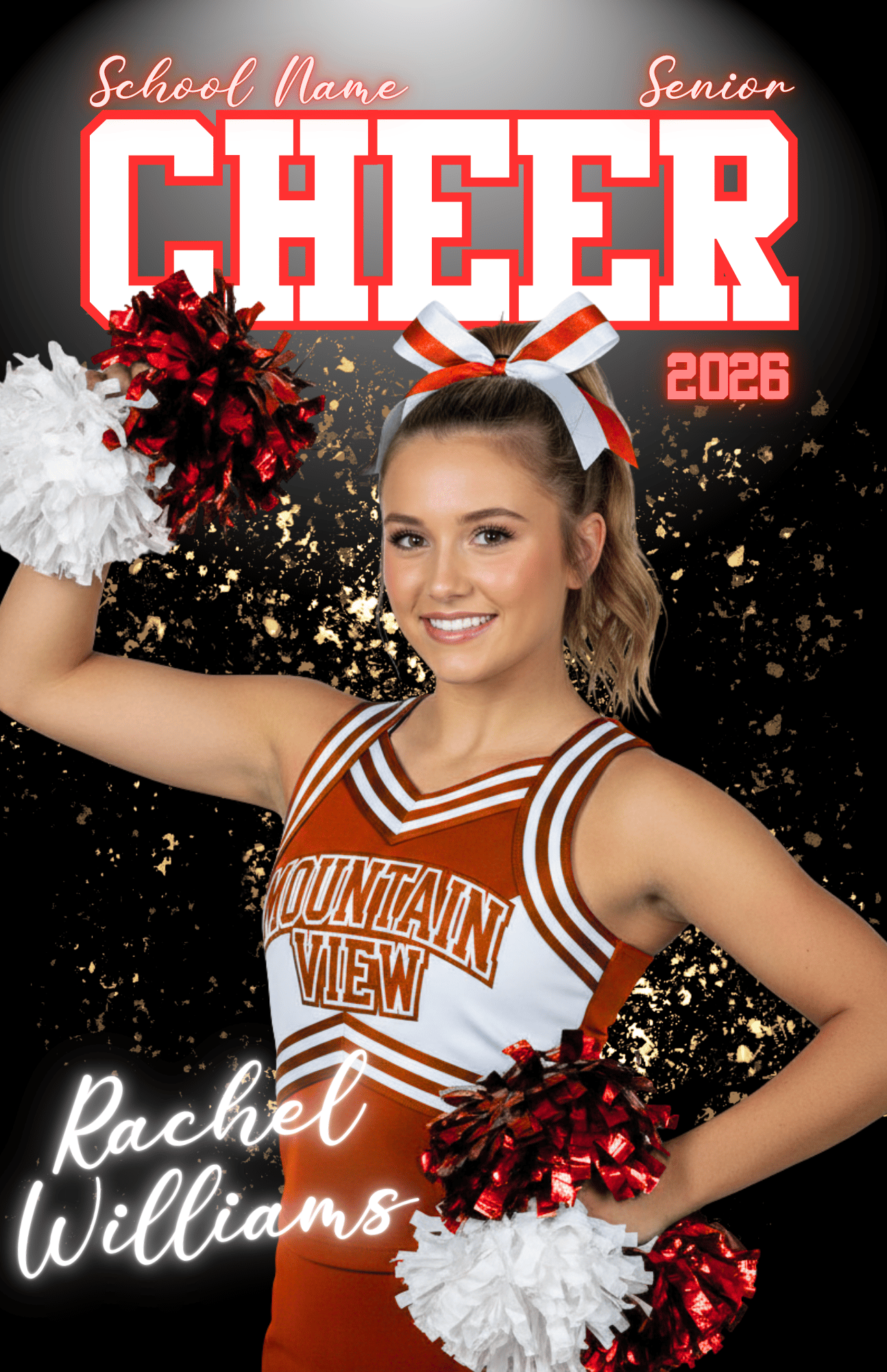 Get game-day ready with this modern, customizable cheerleader poster template – perfect for cheerleaders, teams, schools, or proud parents! Easily edit in Canva to add your own cheerleader photos, team name, and event details. No design experience needed!