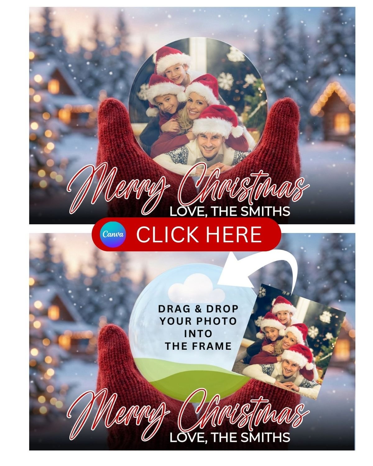 πŸŽ„ Santa Snow Globe Christmas Card – 6x4 Inch | Canva Template