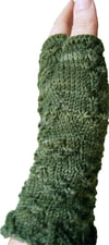 Mitts are worked in the round. They start with a delicately waving edge that moves into a field of flower clusters. Both hand and thumb end with an i-cord bind off.