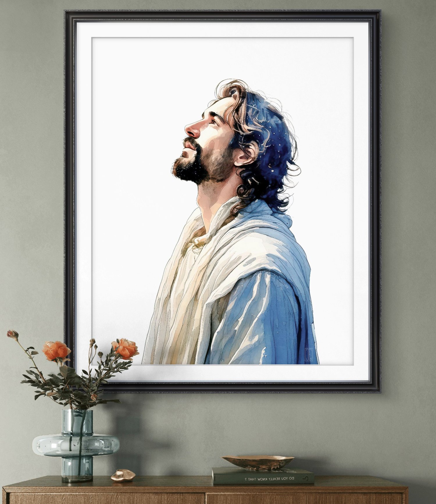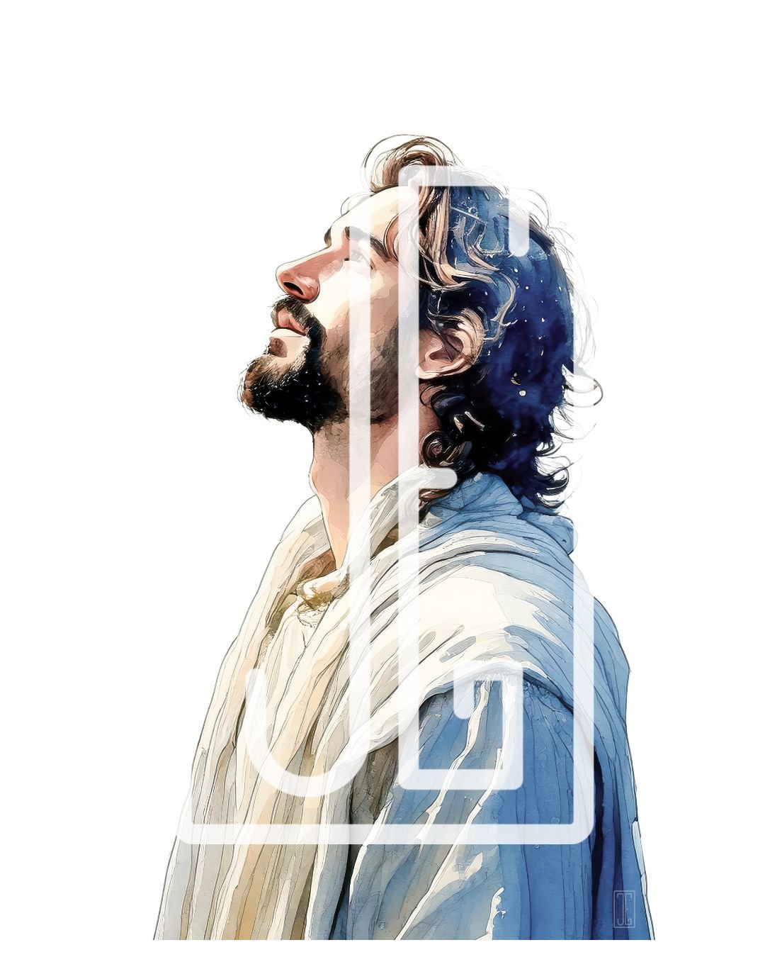 This watercolor painting of Jesus Christ gazing upward captures a powerful moment of divine connection and hope. Bring a sense of peace, reverence, and spiritual strength into your home. A meaningful addition to any space, it invites reflection and inspiration.
