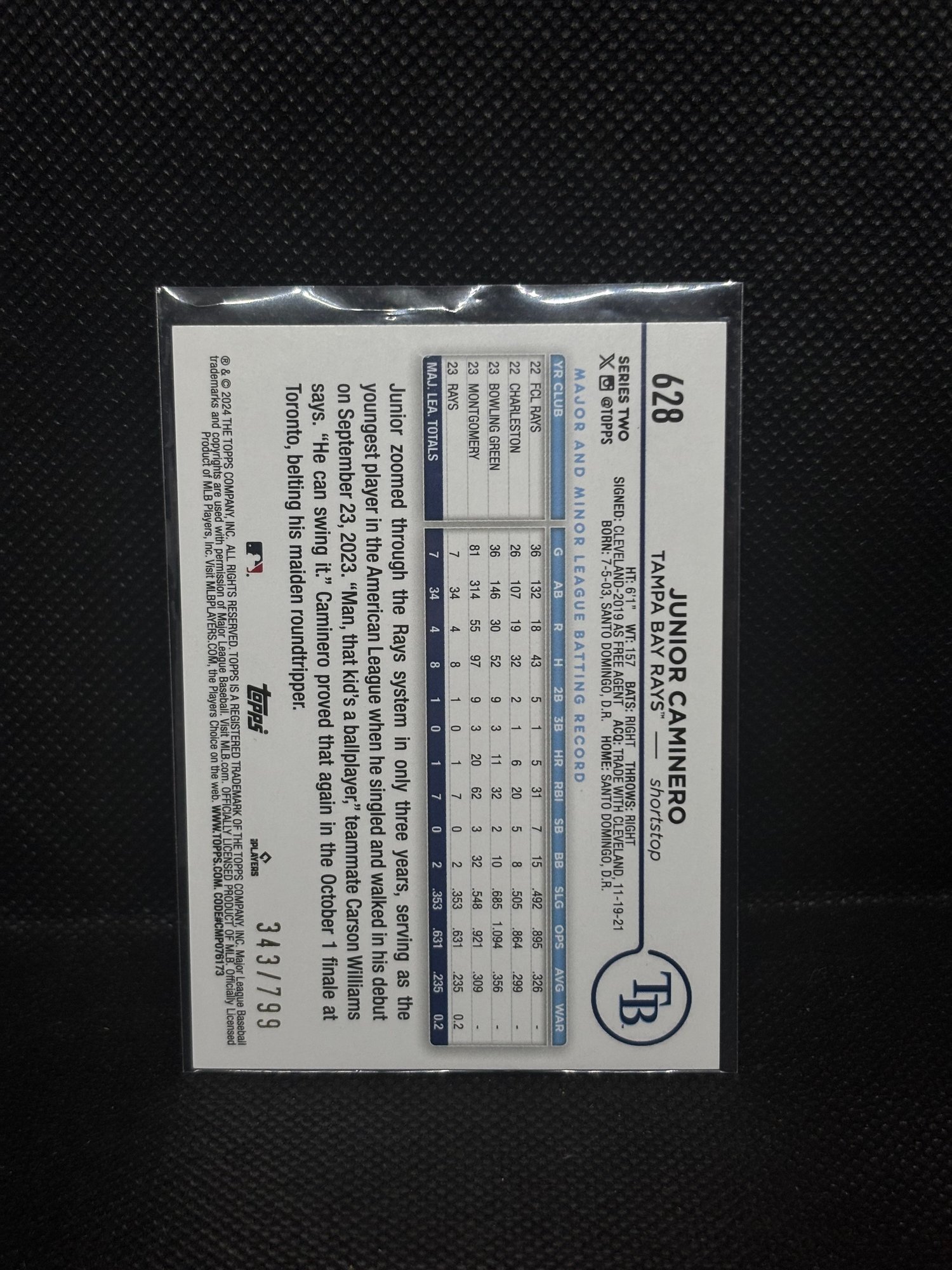 Junior Caminero 2024 Topps – Rookie Card #628 | Purple Foil /799