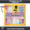 Level up your product line with this action-packed Batman Inspired Learning Pillow Template - a professionally designed, ready-to-use educational resource featuring a complete learning system on the front and a striking superhero character on the back. This template is your ticket to creating products that will fly off your virtual shelves!