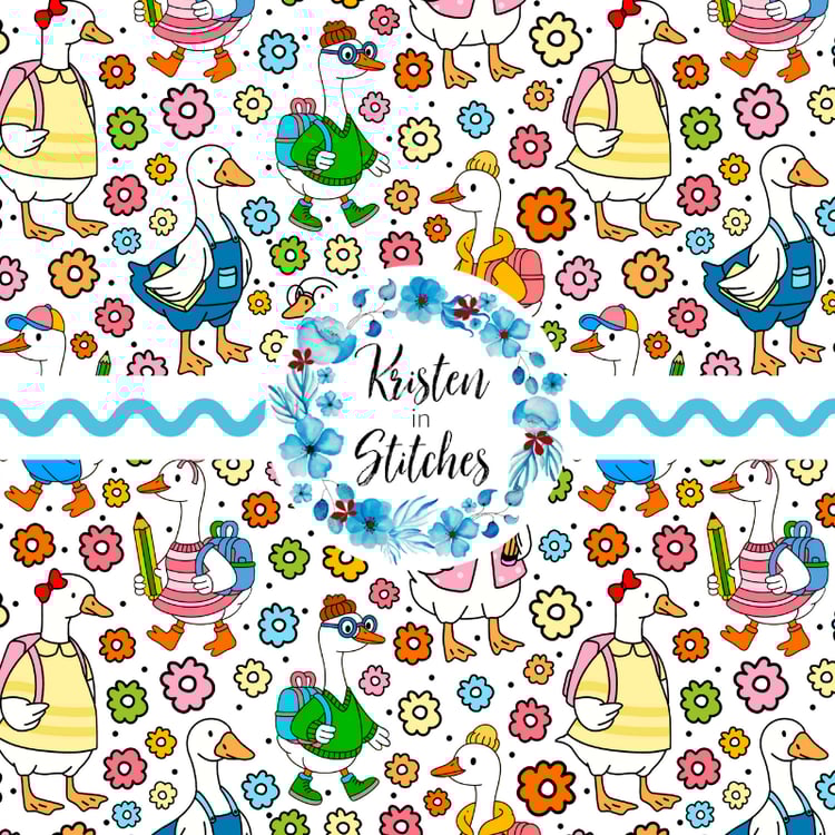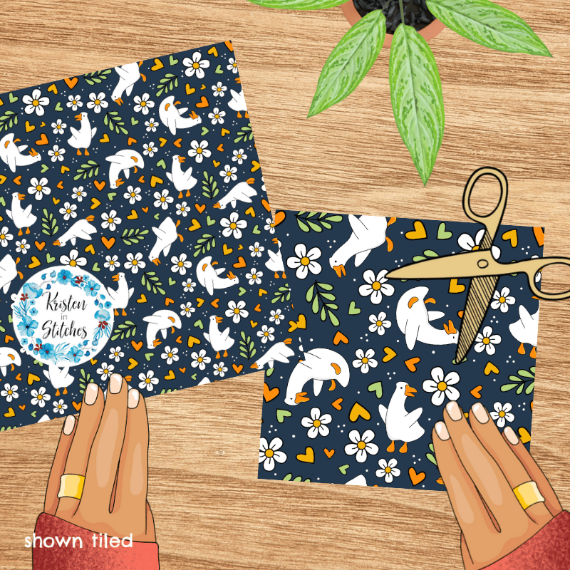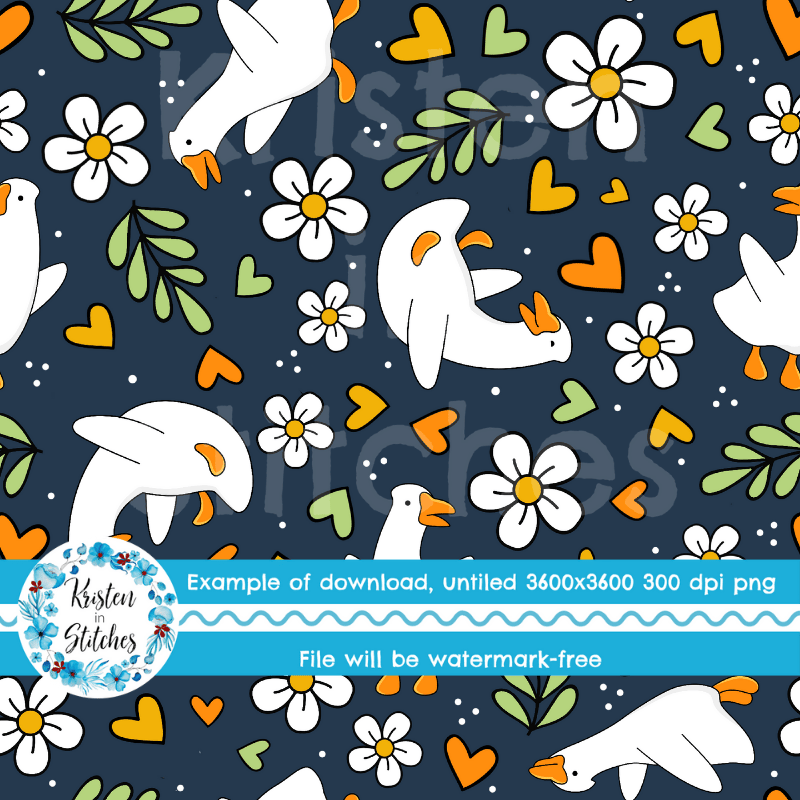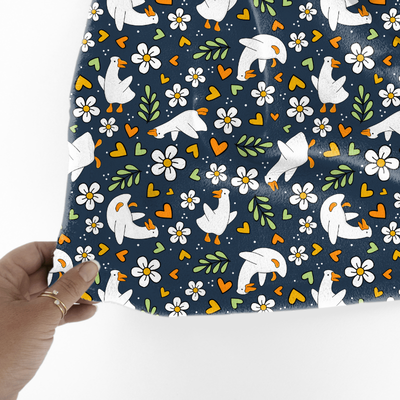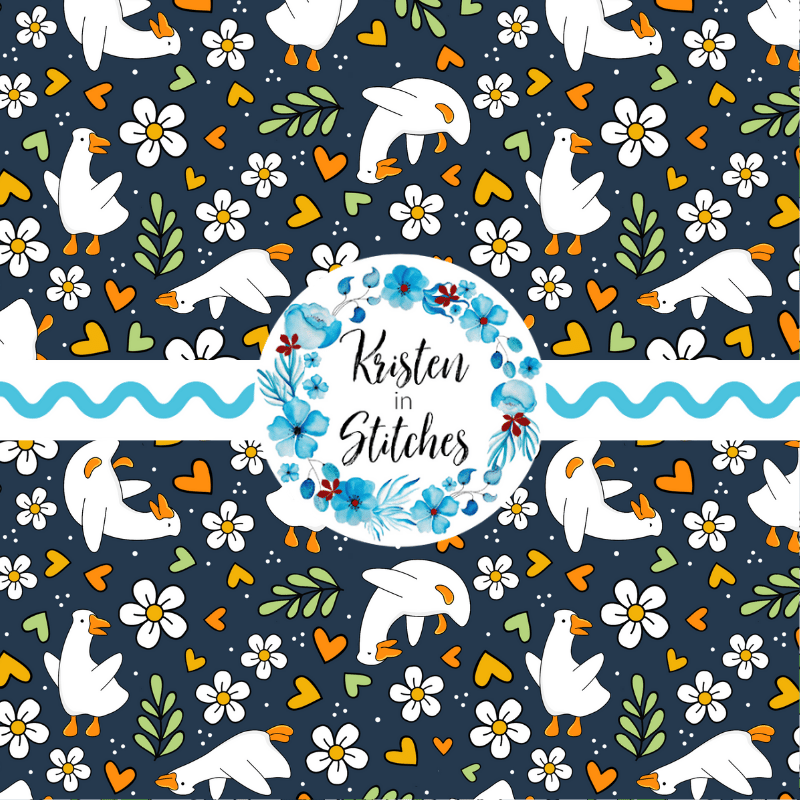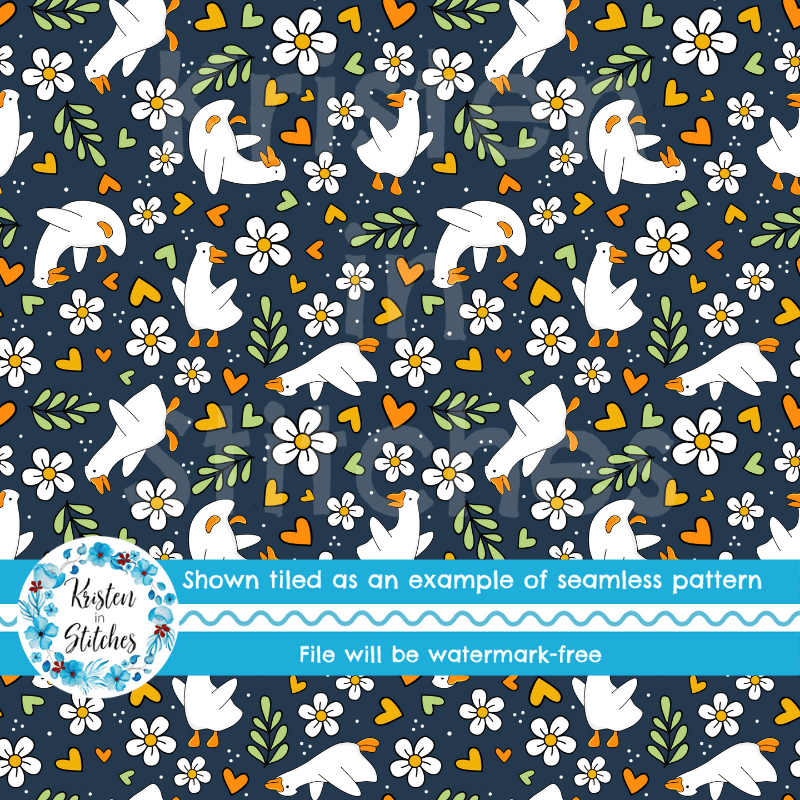 Silly Goose Floral Seamless Pattern, White Geese on Navy