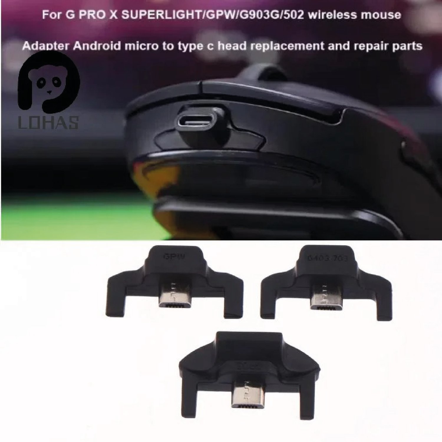 Cet adaptateur est conçu pour remplacer ou réparer la tête de connexion des souris sans fil Logitech G Pro Wireless (GPW), G903, G502, et autres modèles compatibles. Il est également adapté pour les appareils Android avec port Micro USB.