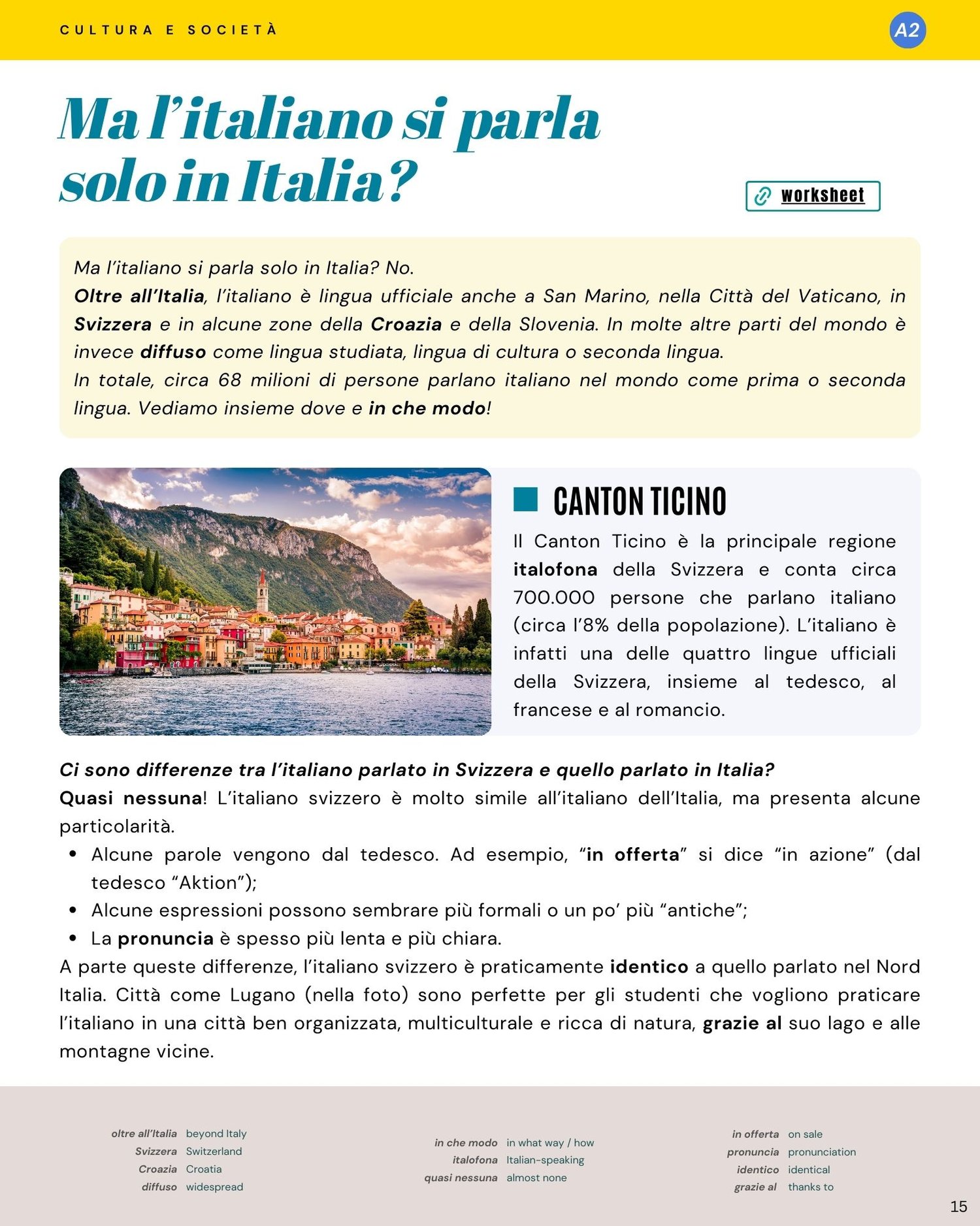 A 36-page digital Italian learning magazine written in accessible Italian for intermediate learners (A2–B1 CEFR).