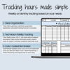 The weekly and monthly trackers are built with different formulas to fit your company’s preferred method of tracking hours. Some teams find it easier to monitor usage week by week, while others prefer to see totals across an entire month.
