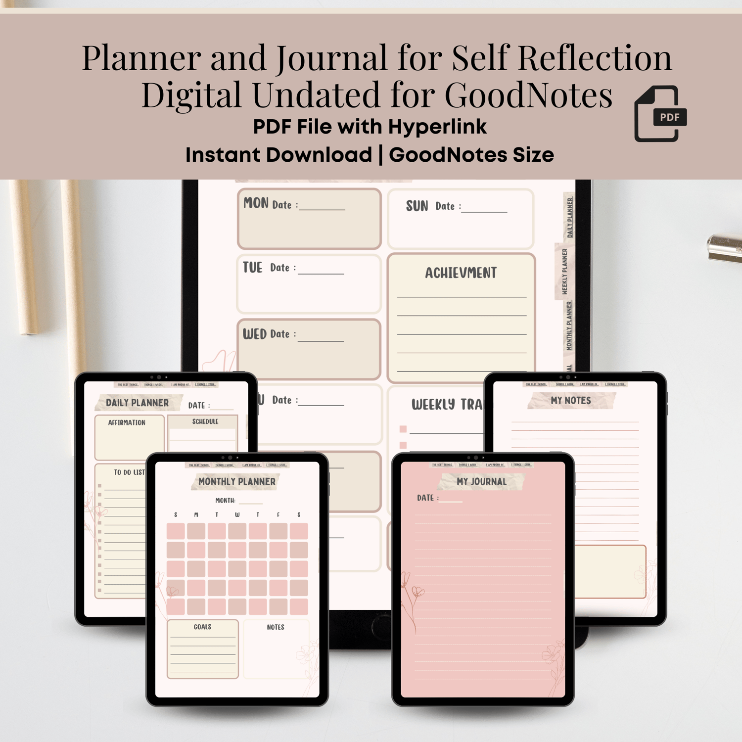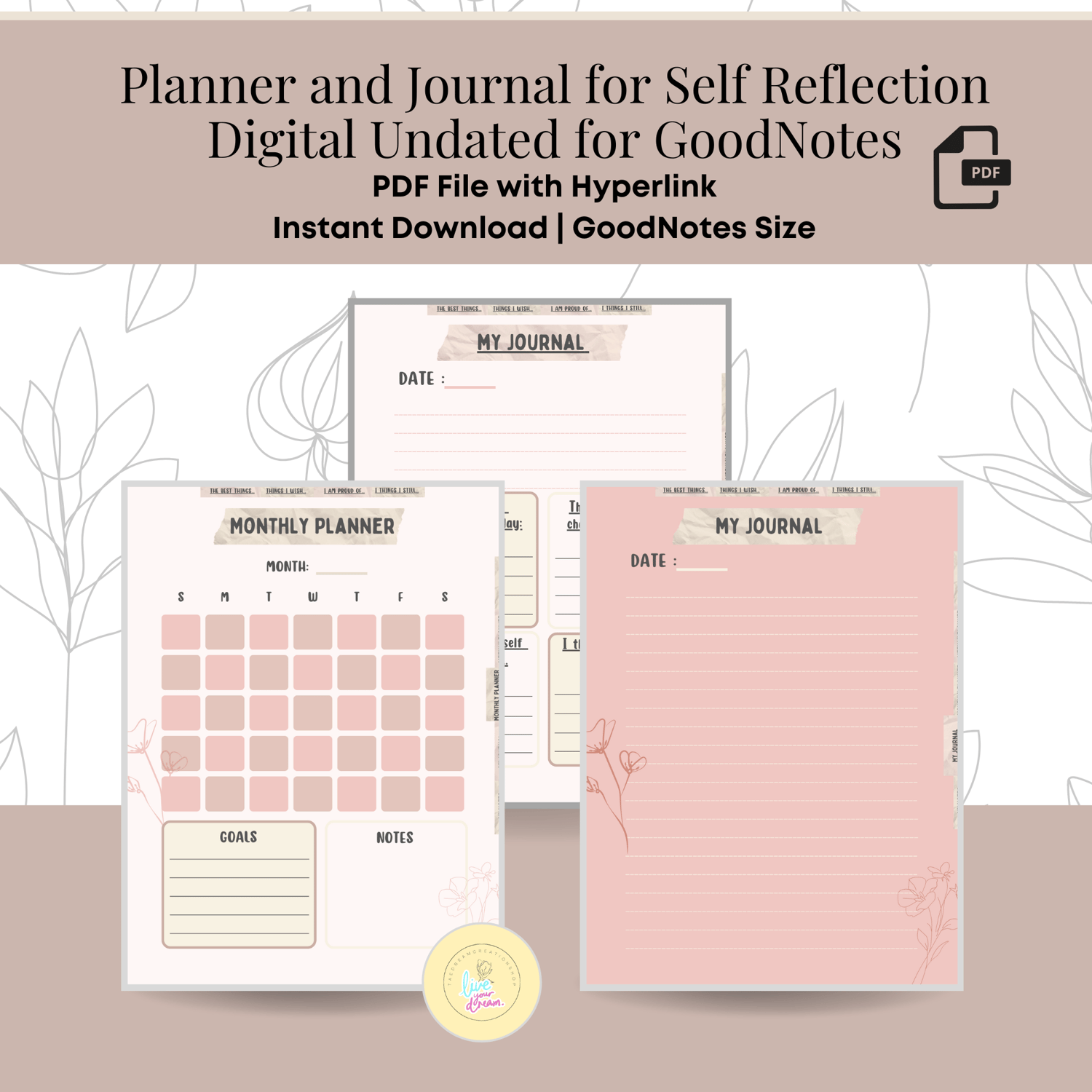 Planner and Journal for Self Reflection Digital Undated for GoodNotes [Instant Download]