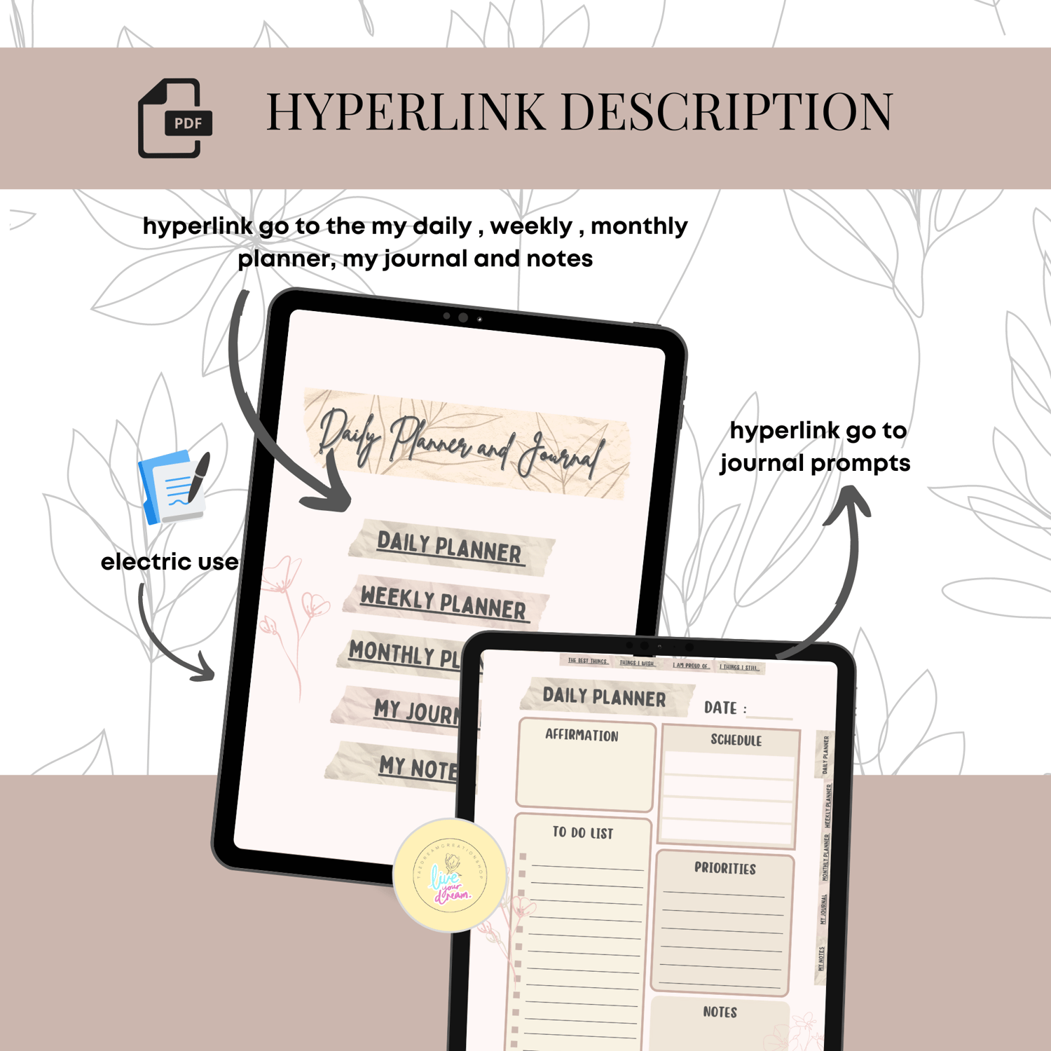 Here is "Planner and Journal Digital Undated for GoodNotes"☕ 🌹