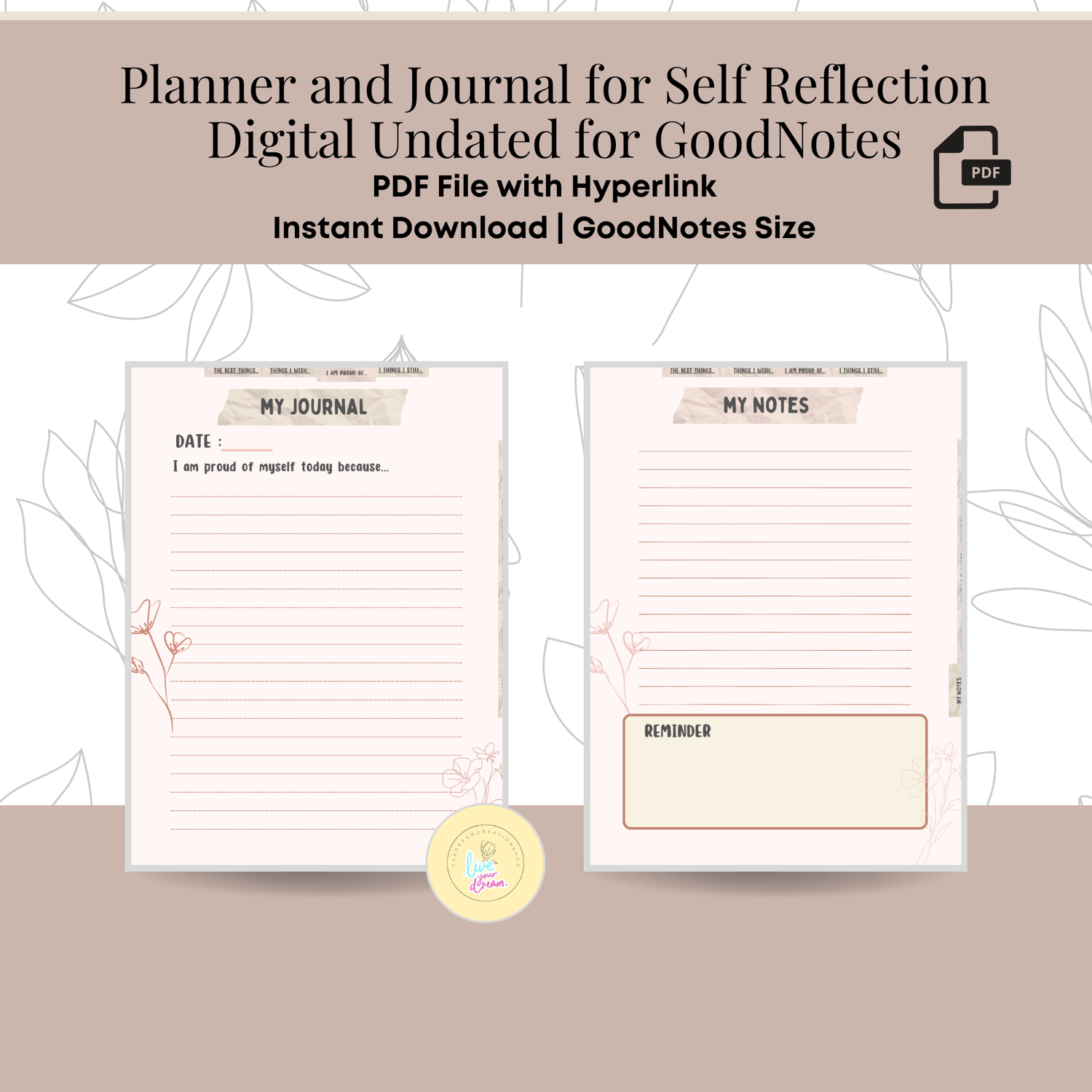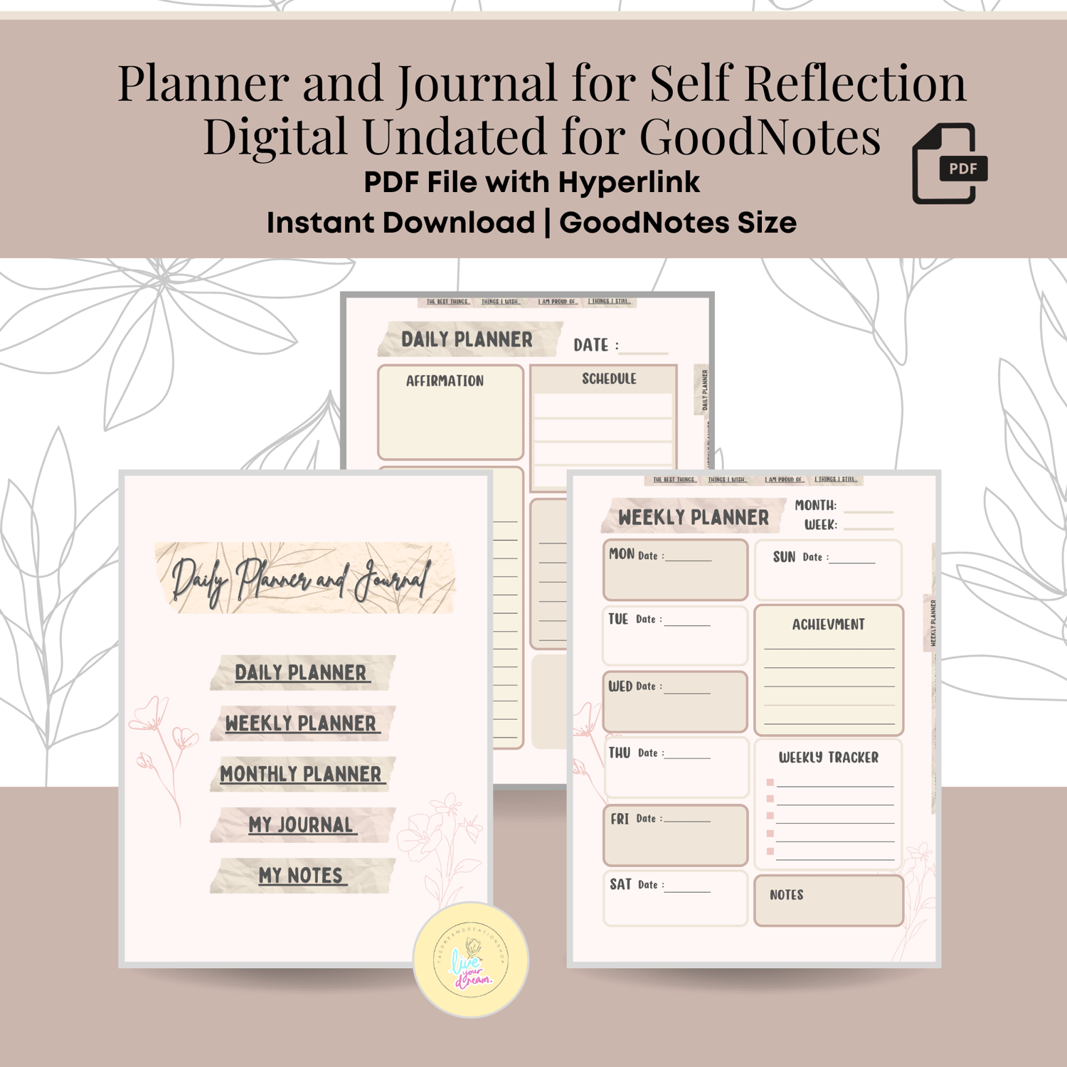 Click the BUY NOW button to get access to the Planner and Journal for Self Reflection Digital Undated for GoodNotes [Instant Download].