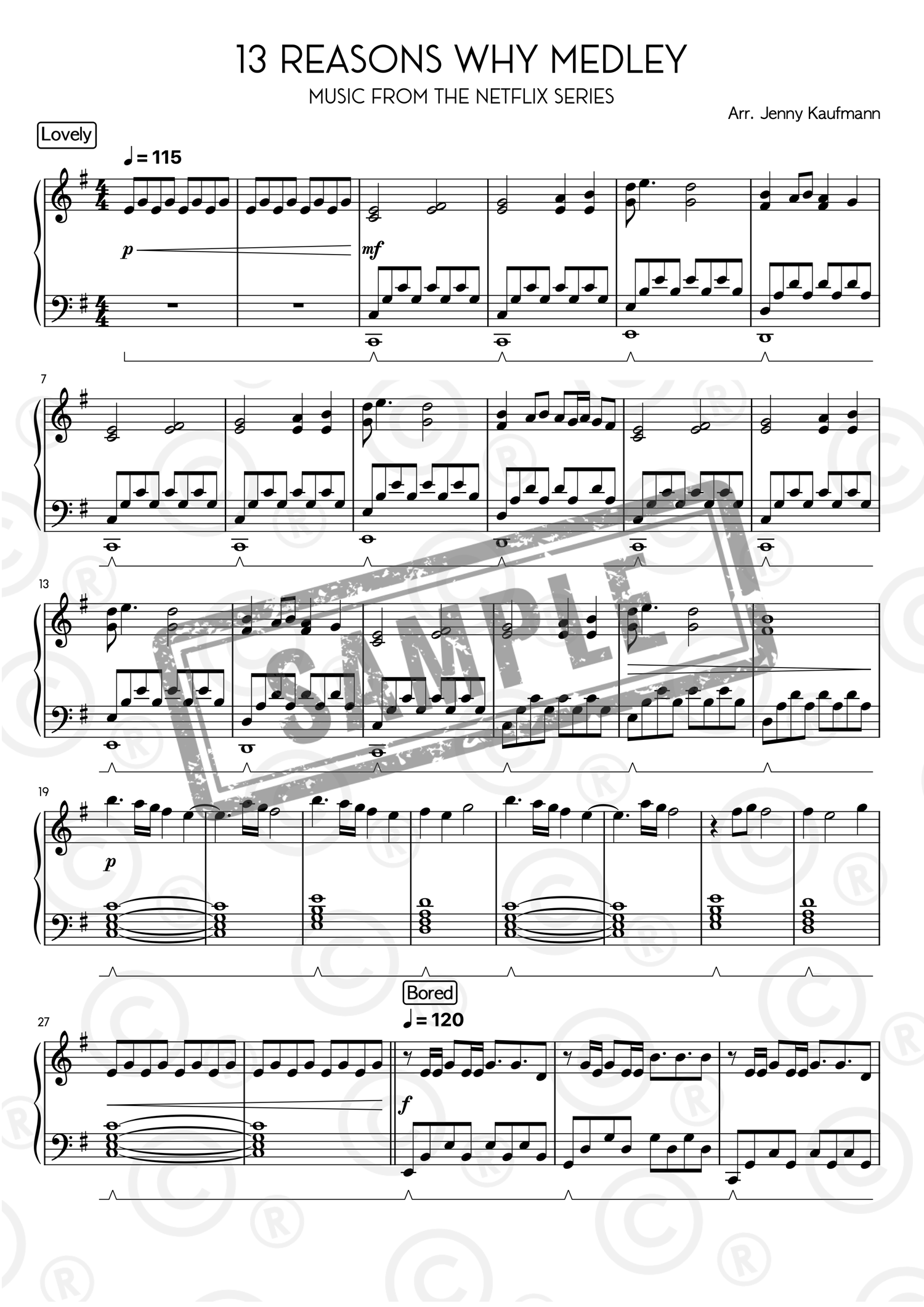Piano sheet music and midi – 13 Reasons Why Piano Medley