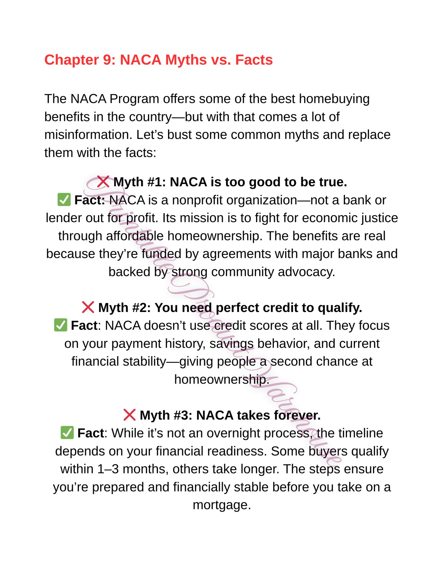This easy-to-follow eBook breaks down everything you need to know about the Neighborhood Assistance Corporation of America (NACA) program β one of the most affordable paths to homeownership available today. Whether you're a first-time buyer or just looking for real savings, this guide gives you the clarity, confidence, and tools to succeed.