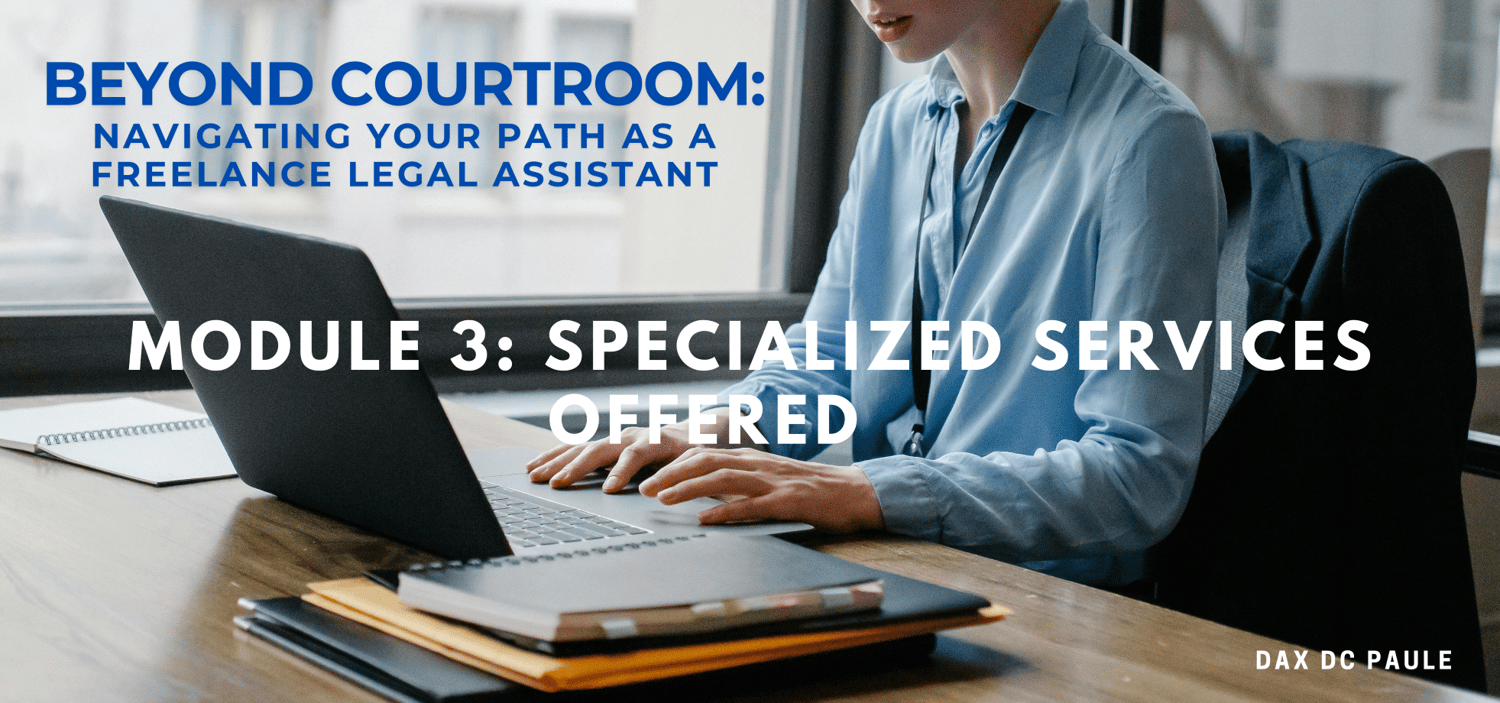 BEYOND COURTROOM: NAVIGATING YOUR PATH AS A FREELANCE LEGAL ASSISTANT (MODULE 3: SPECIALIZED SERVICES OFFERED)