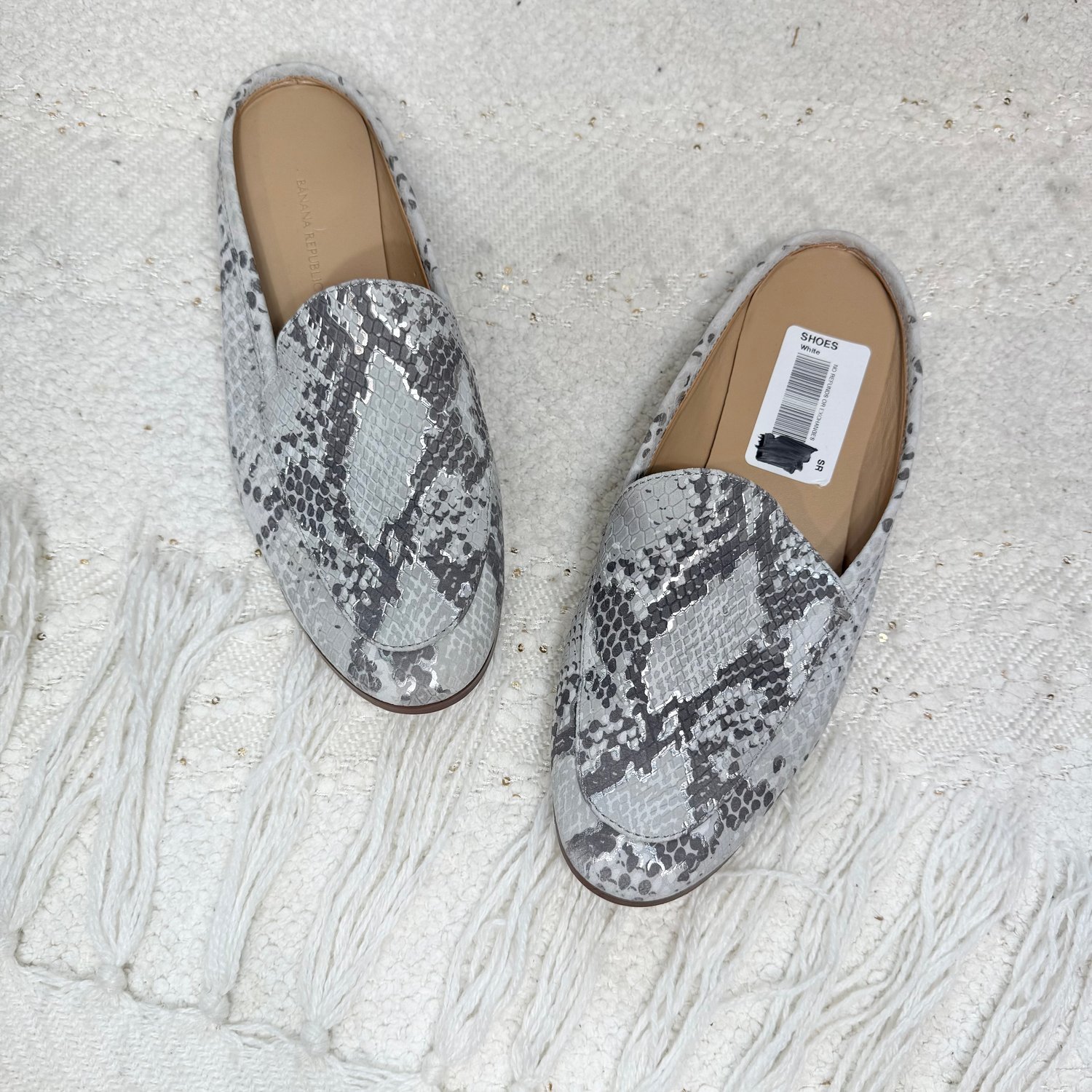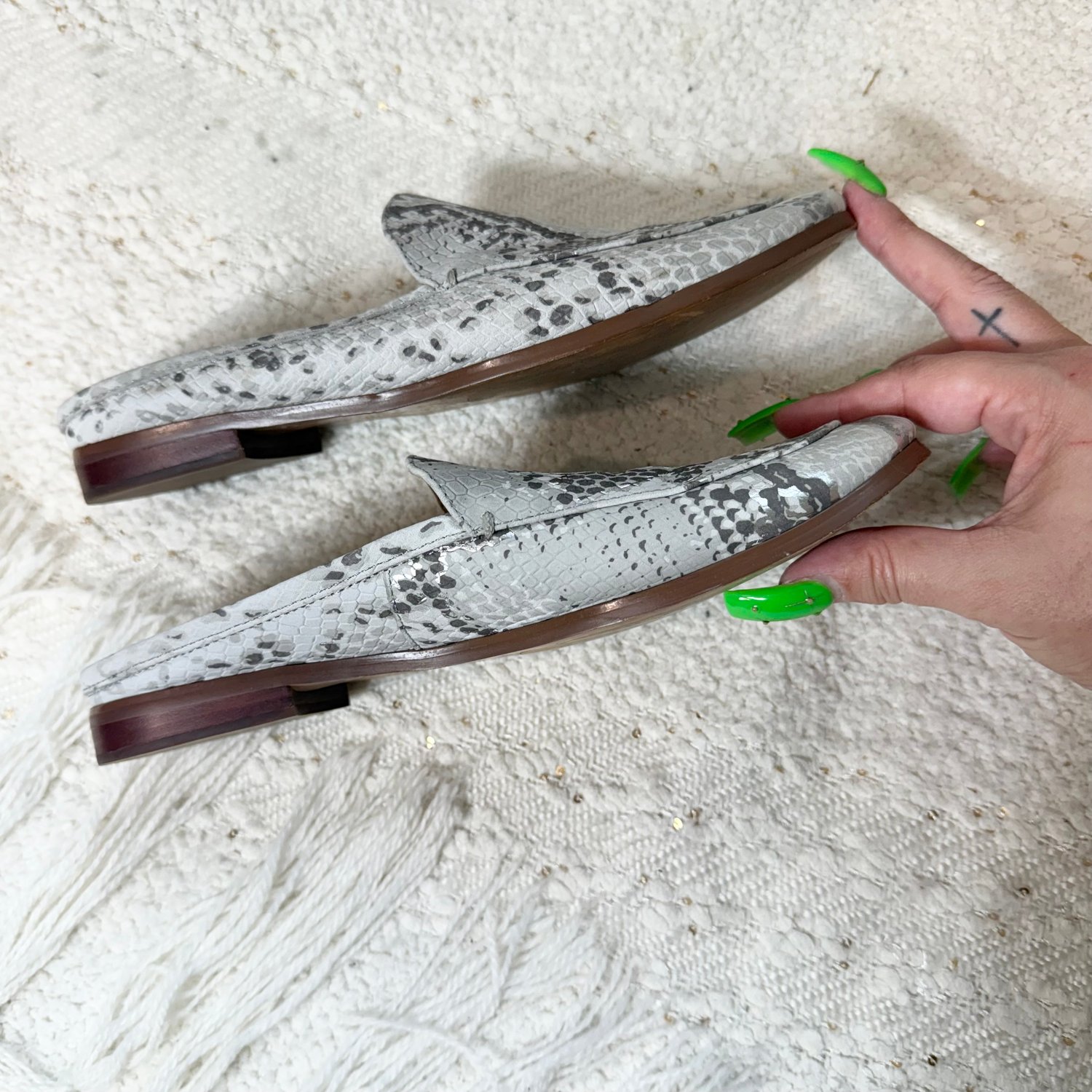 Banana Republic gray, dark gray and silver snake print leather slip on loafer