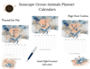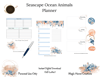 Printable Weekly Planner Monday Start Planner Calendars Work Planner Everyday Planner Seascape Ocean Animals Watercolor Letter 8.5x11