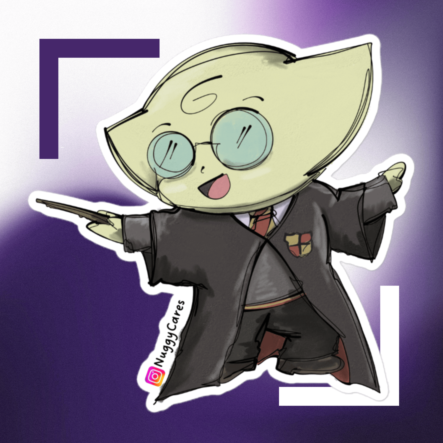 Bravery and courage come alive with Nuggy as a Gryffindor in battle! This action-packed sticker features Nuggy in Gryffindor robes, wielding a wand with confidence and valor. Perfect for those who love heroic adventures and a dash of Nuggy’s magic!