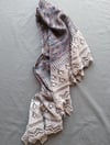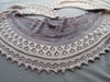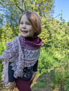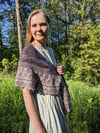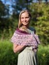 The shawl has a crescent shape, starting from the middle of the longest side and increasing in width rapidly by increases. The color blending part is worked in mosaic technique, working one strand at a time and is easily doable by a beginner knitter. The lace motif is a classic Shetland strawberry motif, as well, the border is inspired by Shetland lace and is worked vertically and attached to the body at the same time.