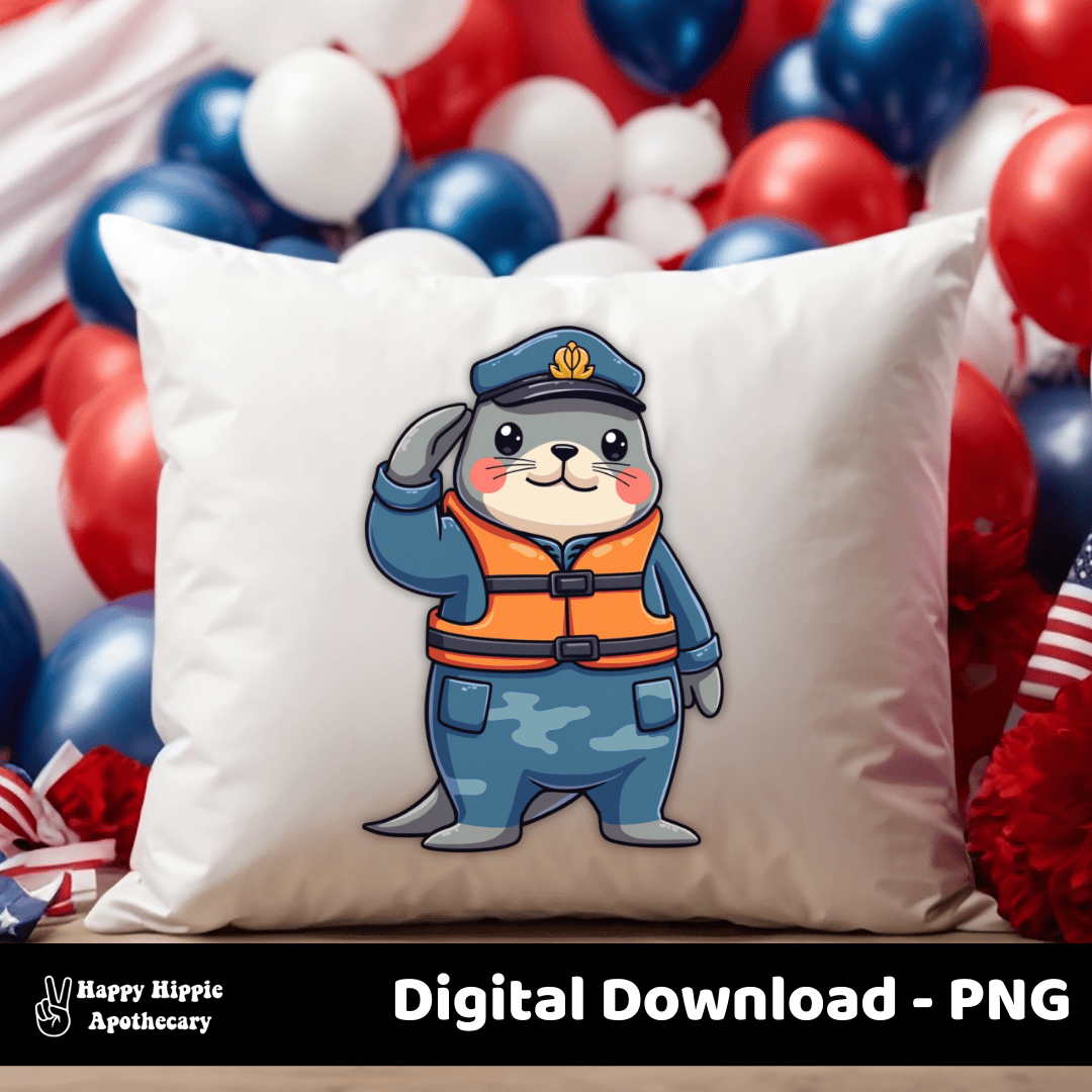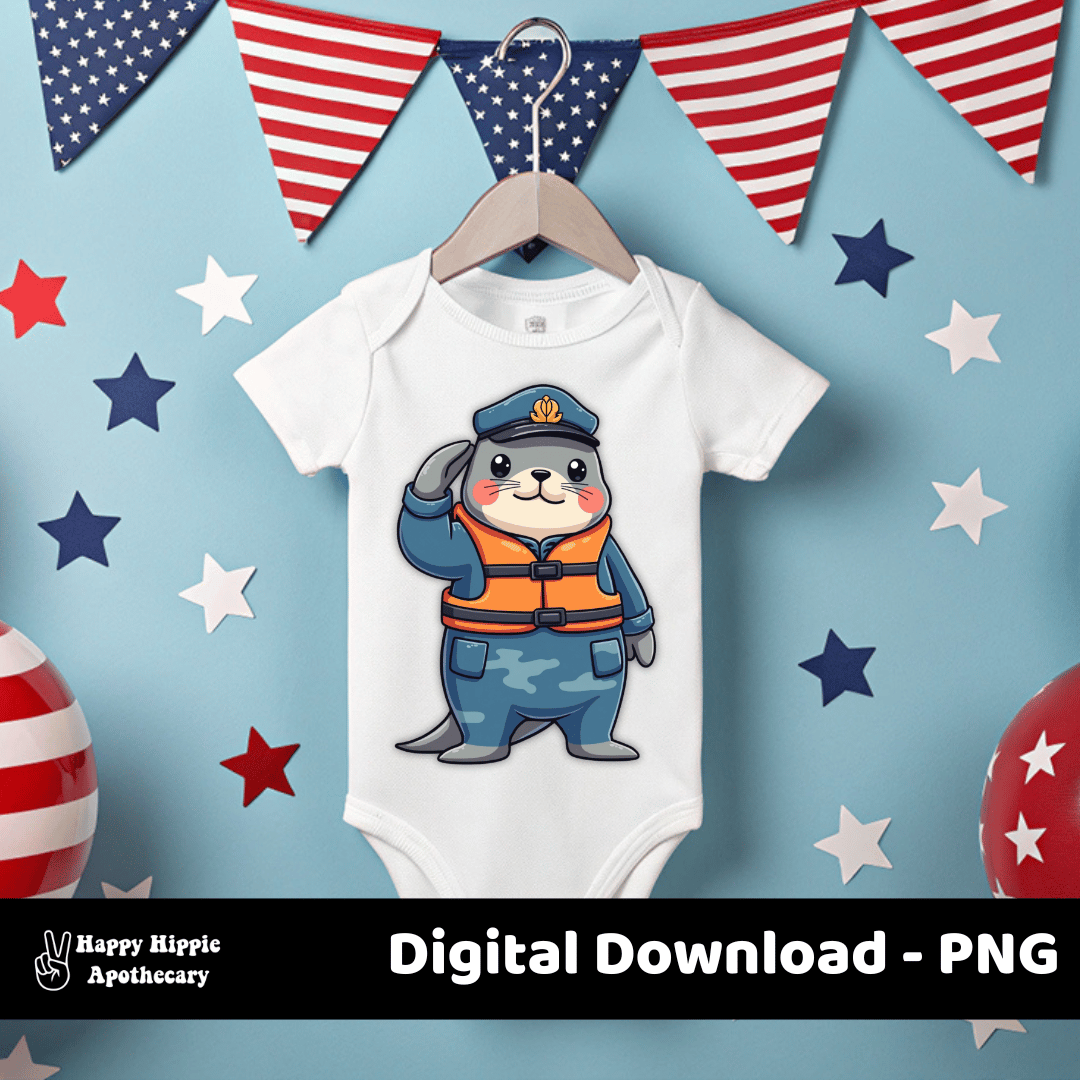 Military Seal PNG | Veterans Day Clipart | Cute Patriotic Animal Sublimation Design for Crafts, Shirts, and Mugs