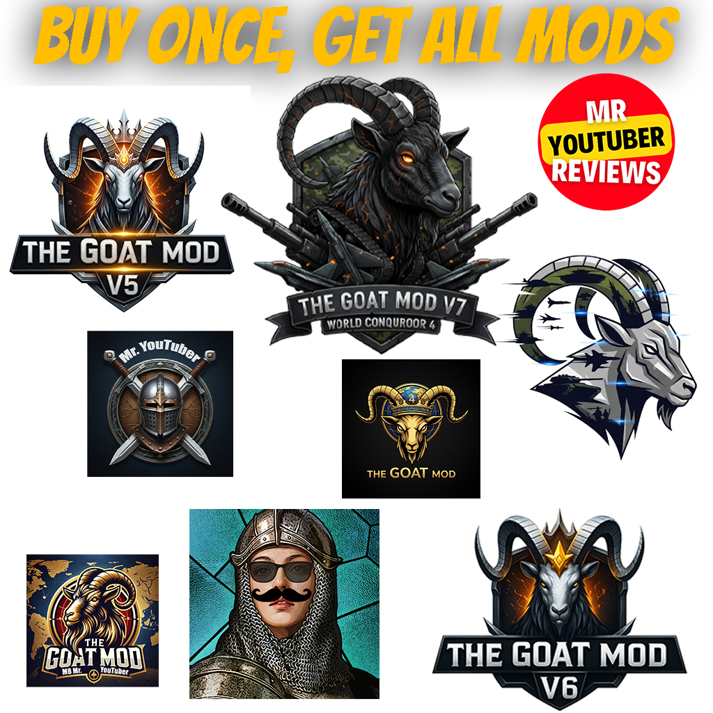 Are you eager to experience every legendary mod without the hassle of searching and downloading one by one? From the acclaimed GOAT Mod V1.3 to the spectacular GOAT Mod V7, including the unmissable European War 7 Mod, every mod in this bundle is truly unique—you won’t find anything like them anywhere else.