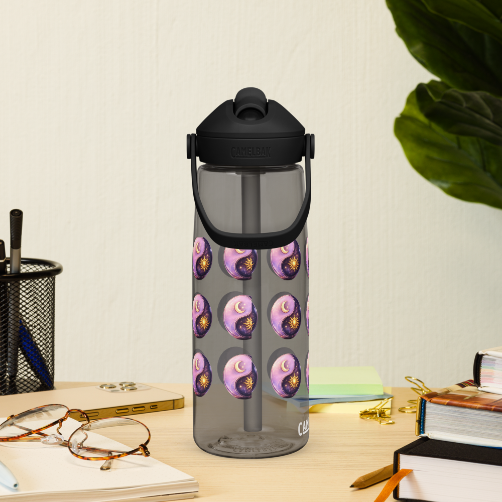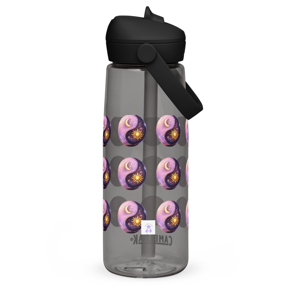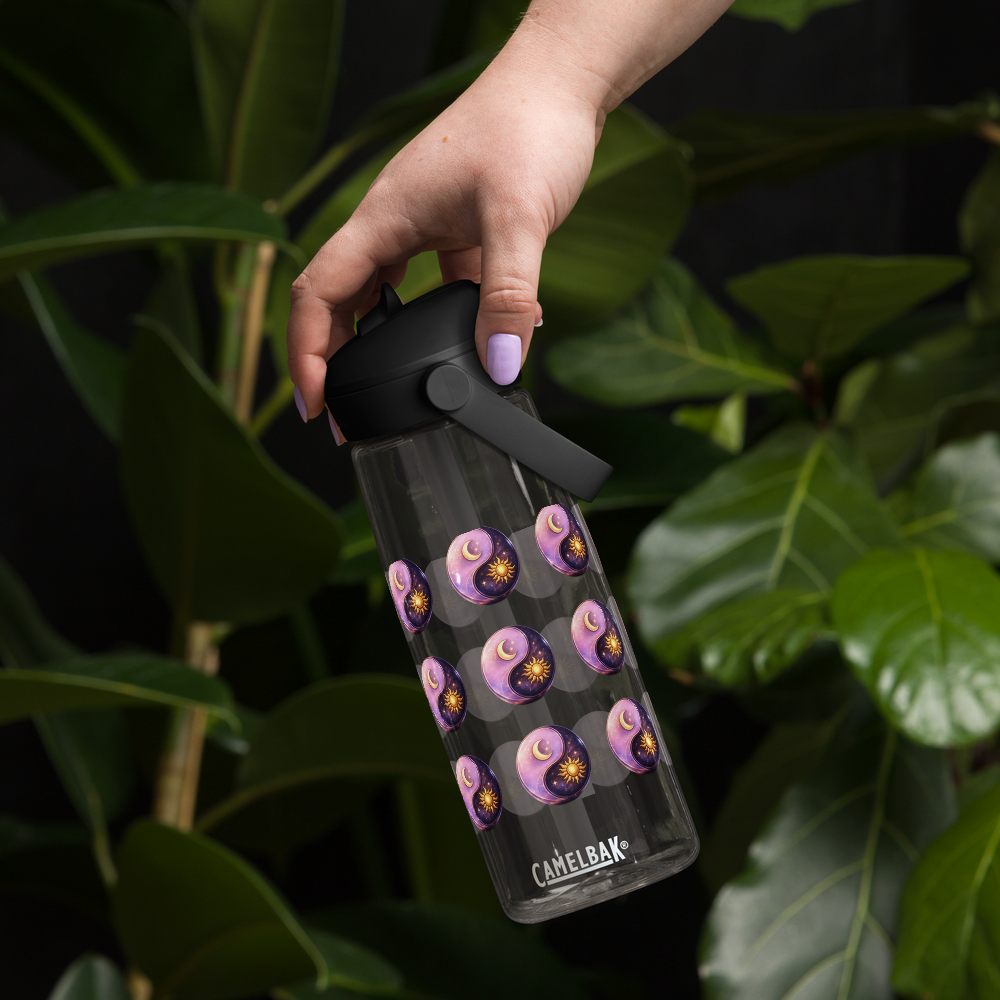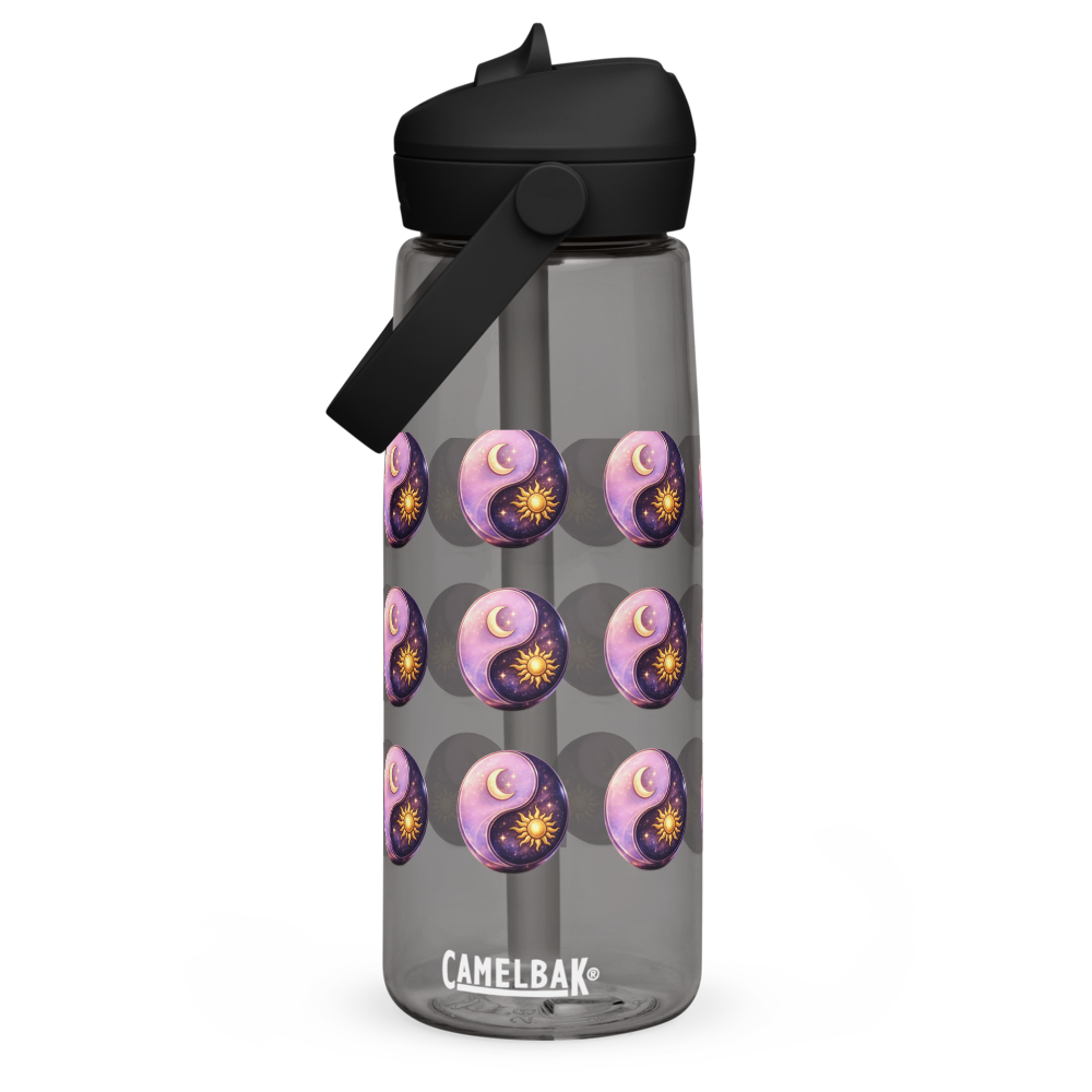 This 25 oz water bottle features an all-over Sun & Moon yin-yang pattern in our signature purple, symbolizing balance, duality, and steady strength. A subtle Centered Lotus Fitness logo sits on the back — small, intentional, and understated.