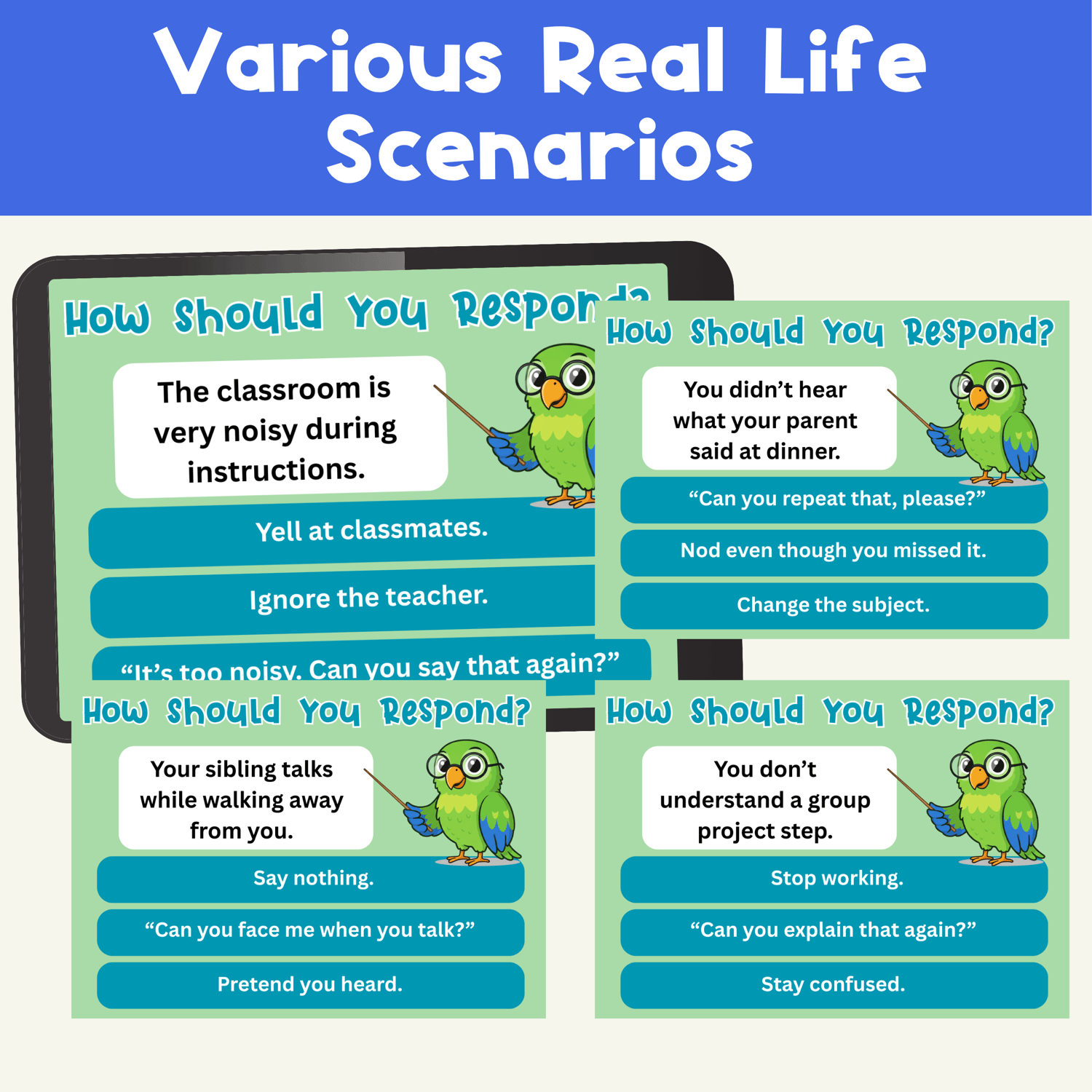 Teach real-life self-advocacy skills with these DHH-friendly Boom Cards!