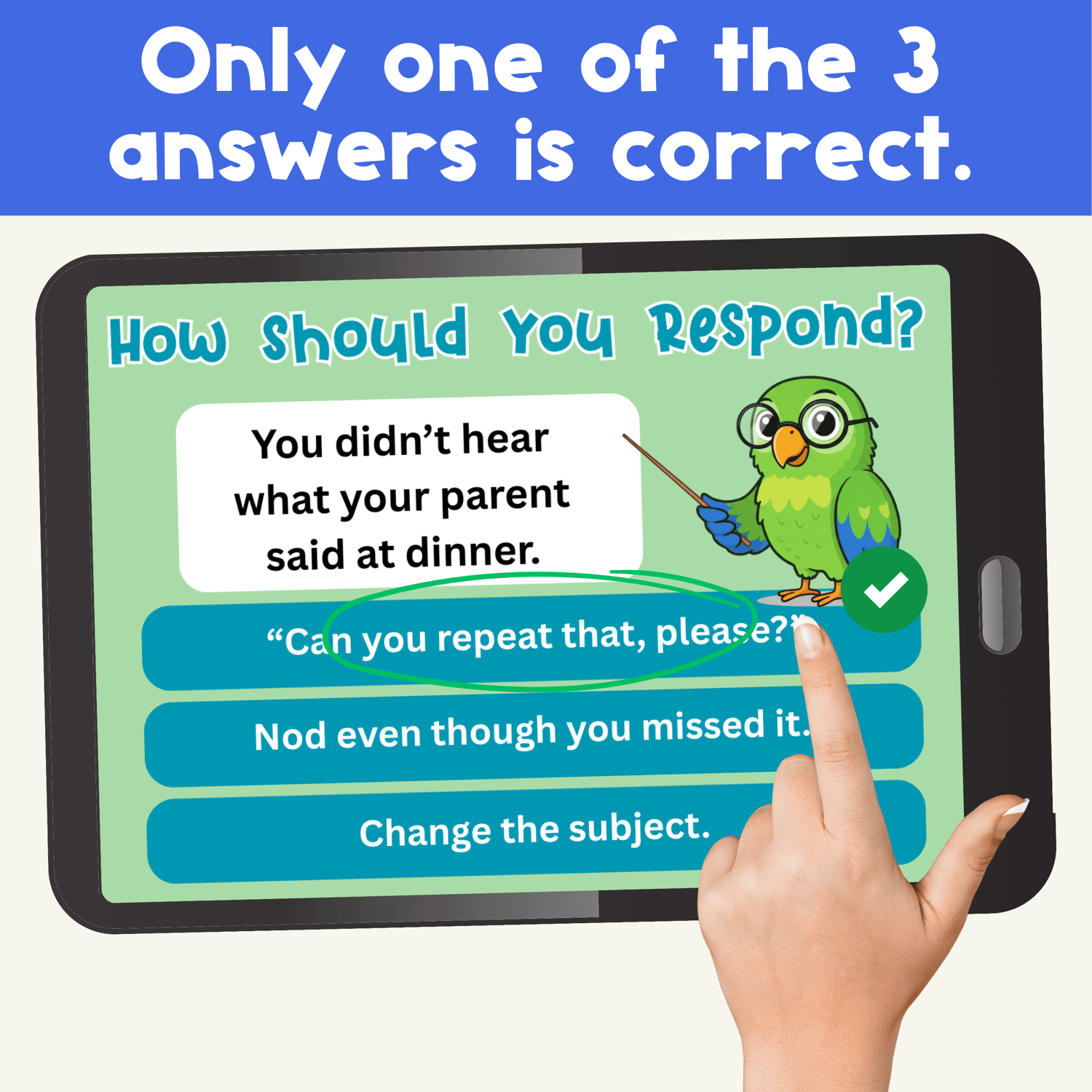 ✔ Real-life scenarios (school, home, friendships, online, emotions)