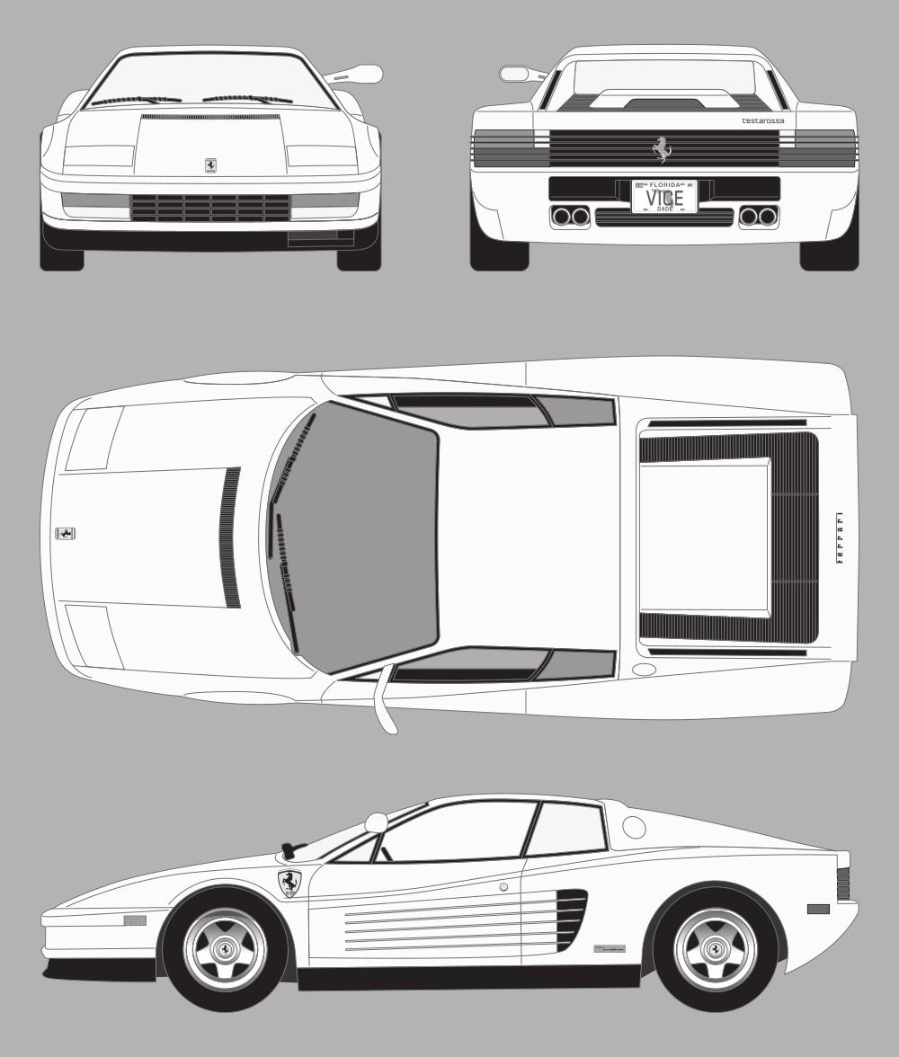 Ferrari Testarossa from Miami Vice Car Blueprint