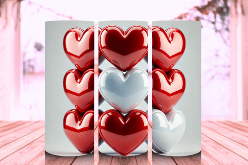 Red & White Valentine Hearts Tumbler Wrap - 20oz Skinny Tumbler Sublimation Design