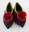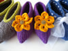 - For slippers with knitted flower: As above plus heavy worsted weight yarn - 40 yards in main flower color, 5 yards in center flower color