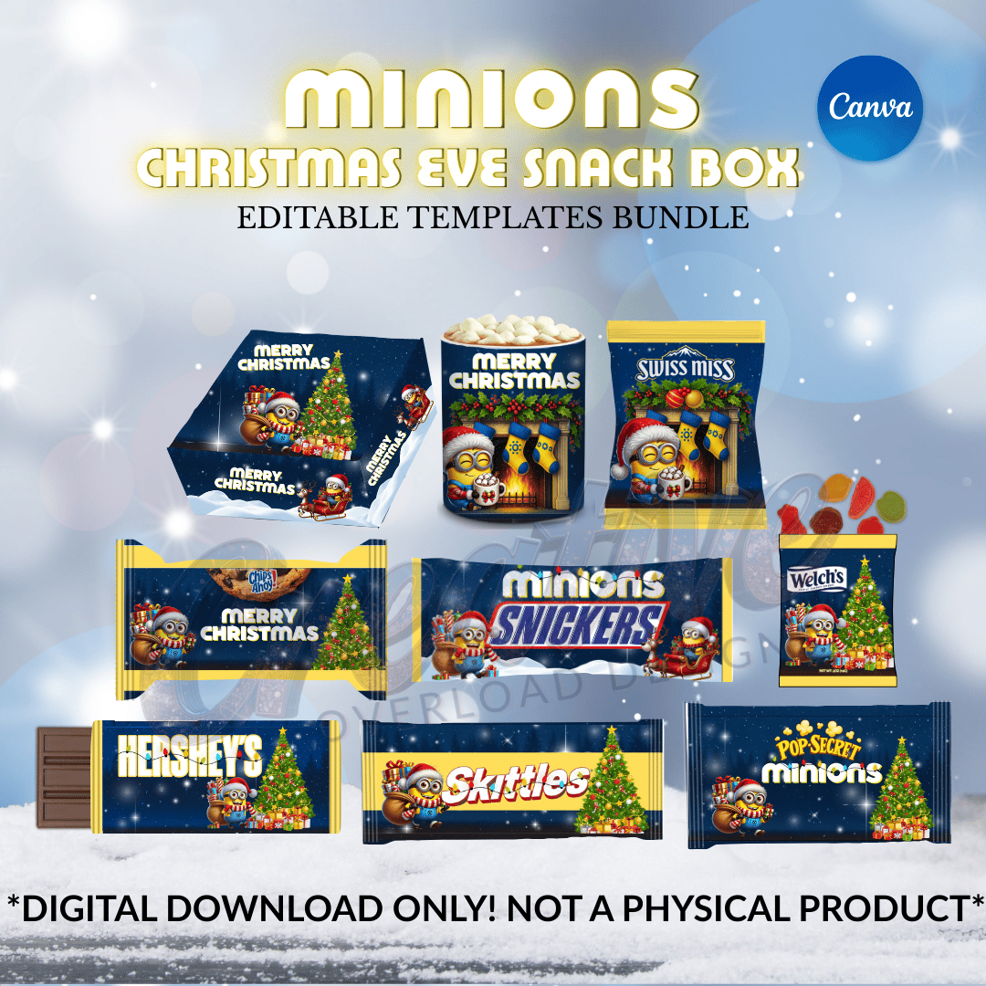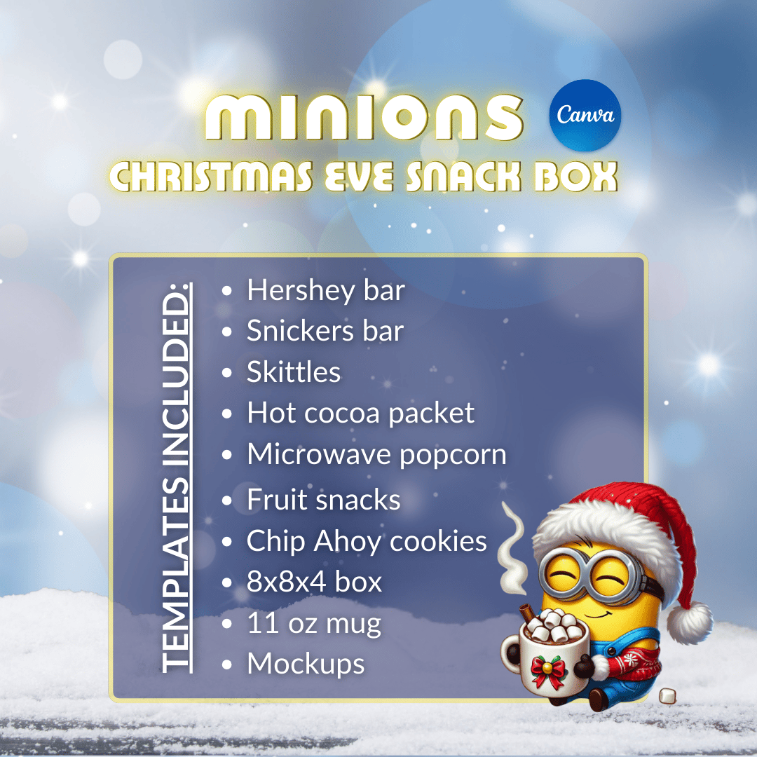 Christmas Eve just got way more fun. This Minions-themed Christmas Eve snack box template bundle is made for parents who want that wow factor without spending hours designing. You customize. You print. You instantly create the cutest, most memorable Christmas Eve treats for your kids.