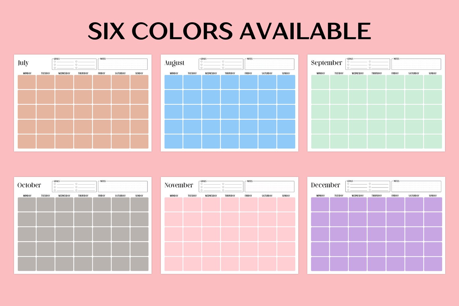 This bundle includes this monthly planner in six colors: beige, blue, green, grey, pink and purple. It’s perfect to mix between these options throughout the year! 😊