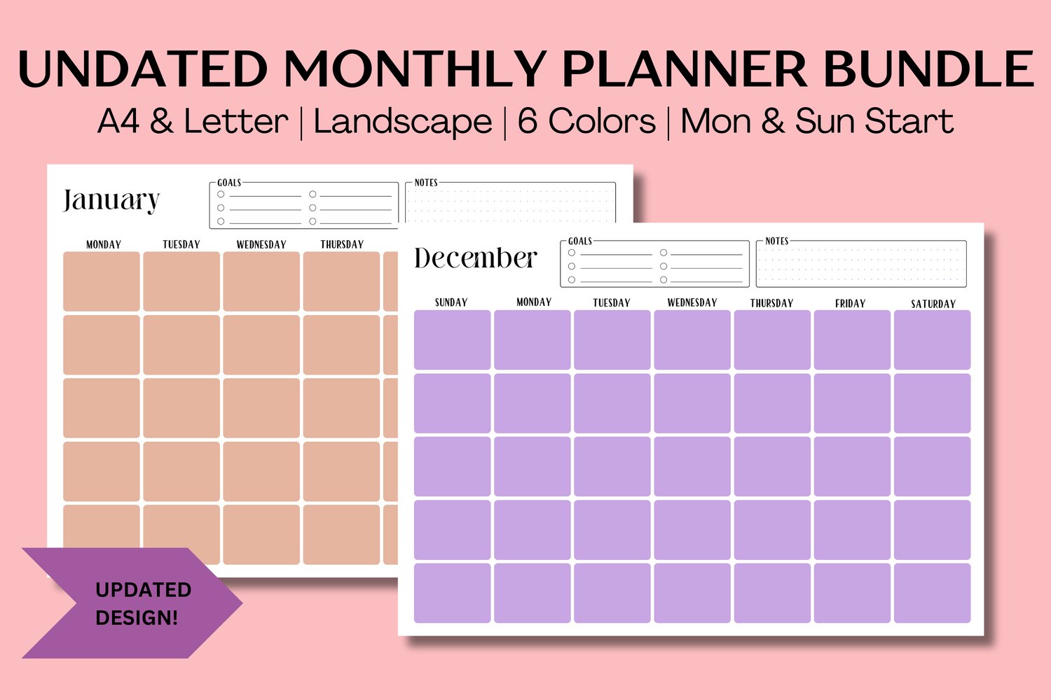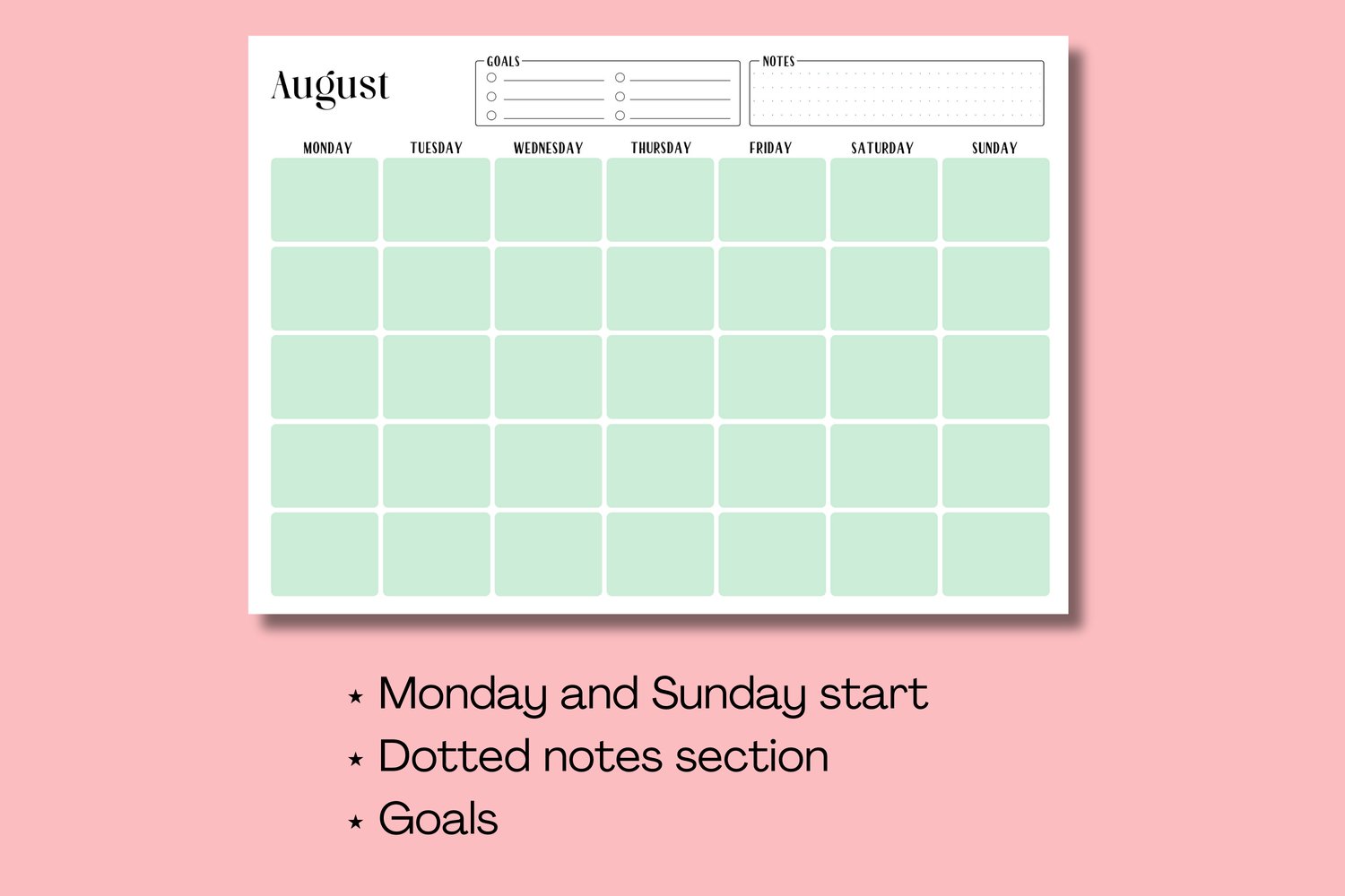 Planning your month ahead is a lot easier with this undated monthly planner. It's a printable planner in landscape mode to plan out your month, along to write out notes and set your goals for the month. It's perfect for those who want to plan ahead and stay organized.