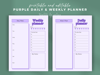 Transform the way you organize your life with the Purple Daily and Weekly Digital Planner Canva Template. This elegant template combines the power of effective planning with a vibrant purple color palette to keep you motivated, organized, and on track.