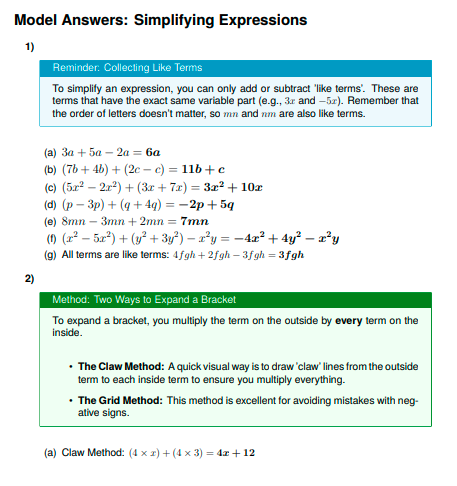 IGCSE Higher Maths: Simplifying Expressions (Worksheet & Model Answers)