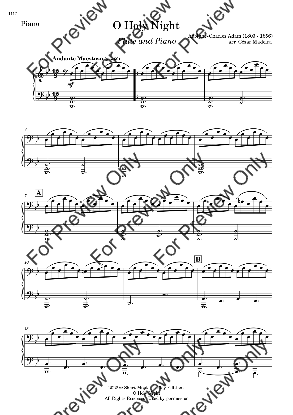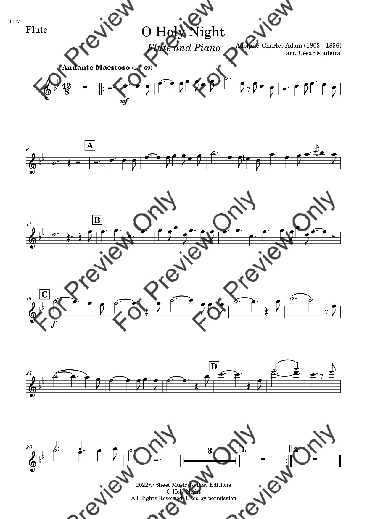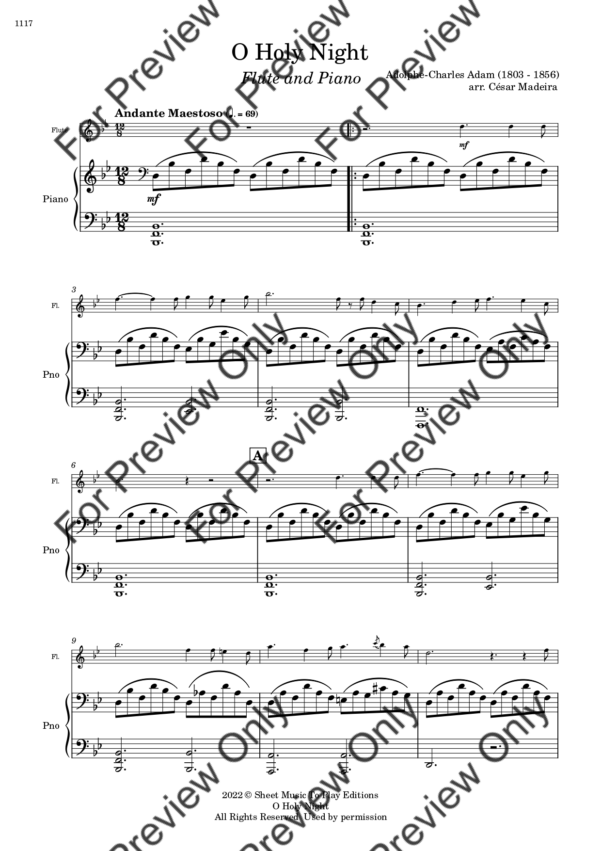 O Holy Night by Adolphe Adam. Arrangement for Flute and Piano. With Full Score and Individual Parts. Have fun!