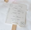 - Vous pouvez personnaliser entièrement les textes des programmes avec les détails de votre mariage : horaires de la cérémonie, du vin d'honneur, du dîner, ou toute autre information importante pour vos invités. Chaque programme est une création unique, adaptée à vos préférences et à l’ambiance de votre mariage.