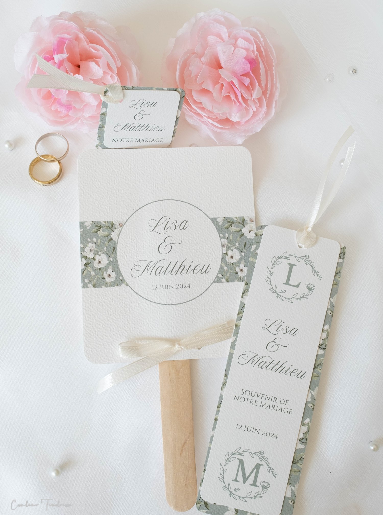 Apportez une touche d'élégance à votre mariage avec nos programmes éventails de mariage de la Collection AUBRAC. Ces créations uniques allient fonctionnalité et esthétique, offrant à vos invités une expérience agréable tout en restant un souvenir précieux de ce jour exceptionnel.