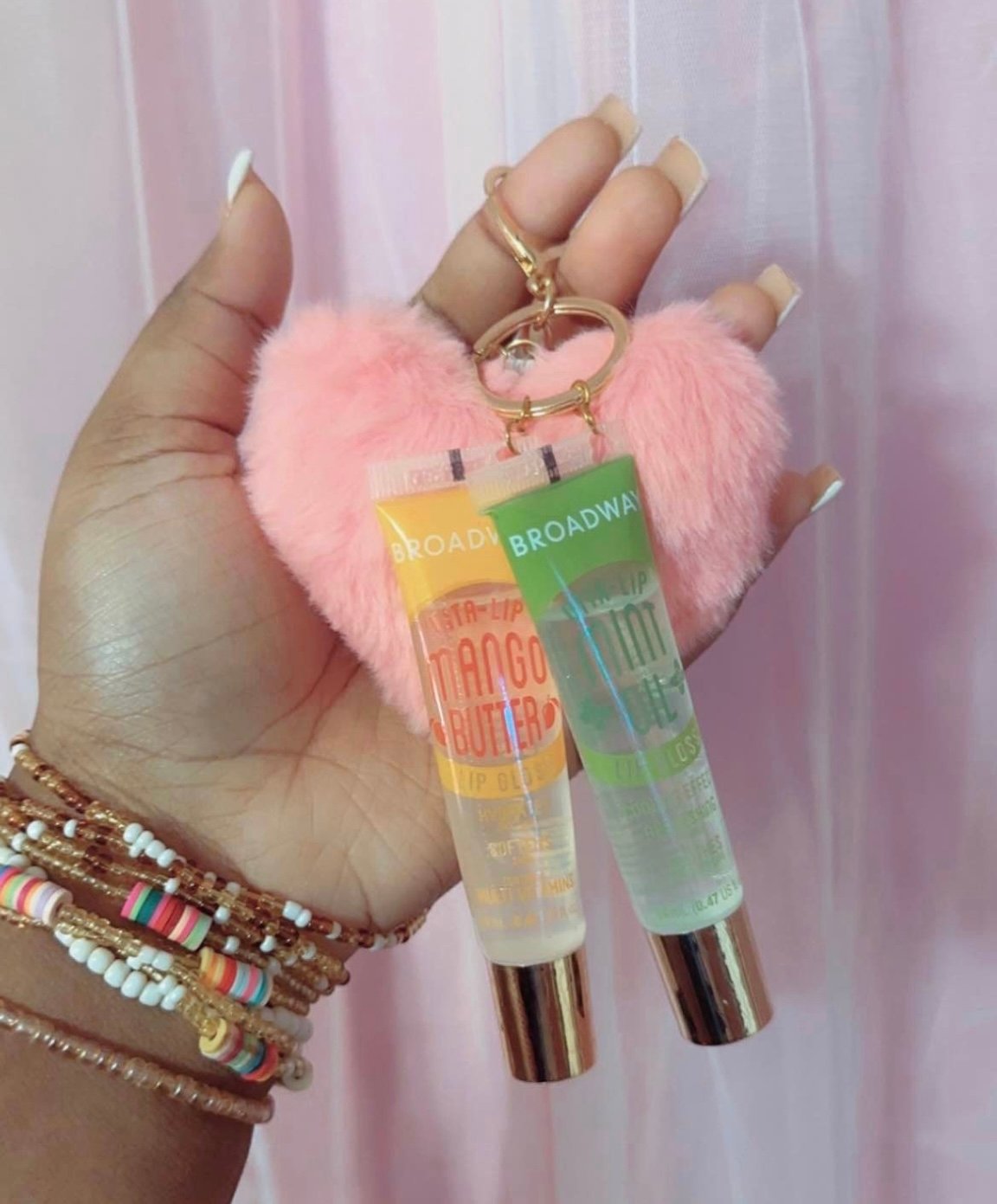 I am sooo in love with this product! It's the perfect combination of cute and functional. The gloss is super smooth, non-sticky, and provides the perfect amount of shine. It also moisturizes really well. The best part is the keychain design. It's cute, convenient, and reasonably priced. I have mine attached to my purse, which gives me easy access to the glosses for easy application. The packaging is also very adorable and makes for a great gift or a little glamorous treat for yourself. I would definitely recommend this to anyone who is a fan of convenience and a little glam in their lives.