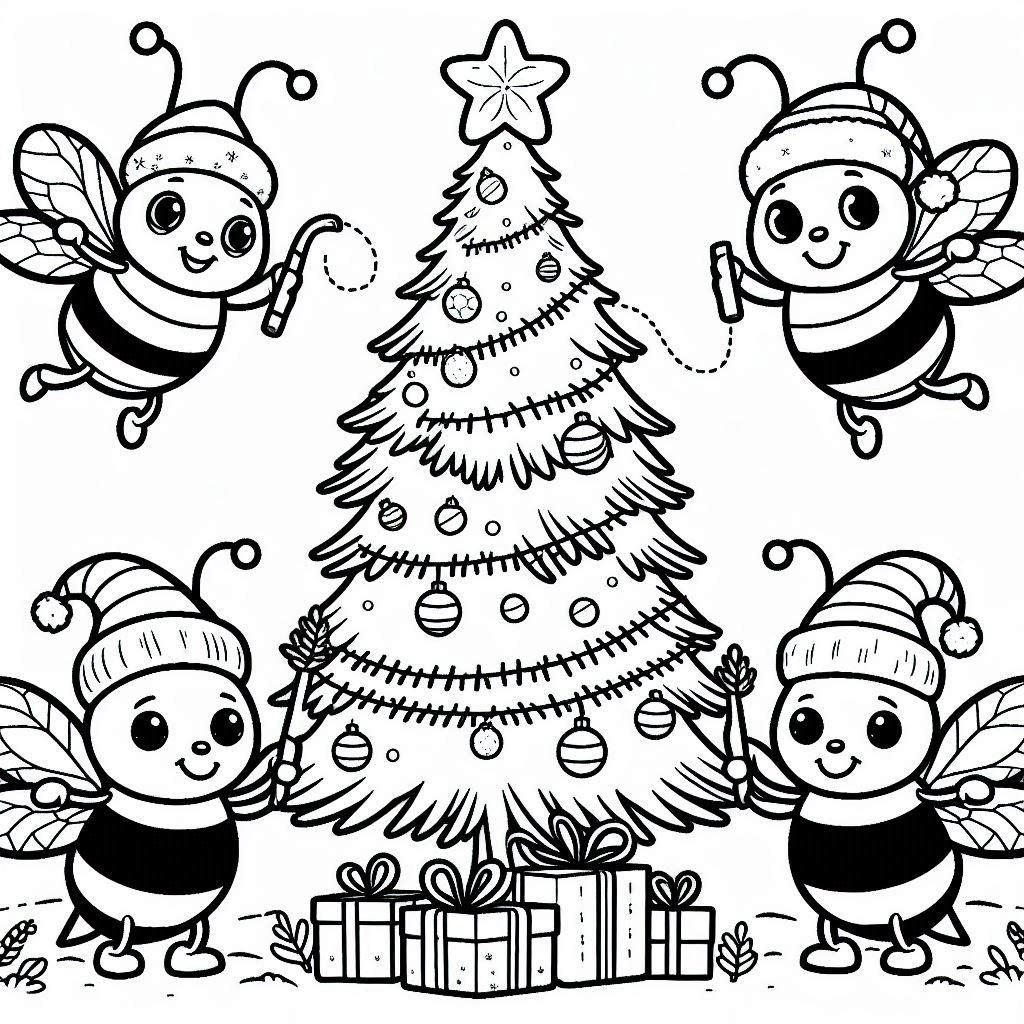 The Christmas of the Bees, coloring ebook, 64 designs, digital printable product, instantly download