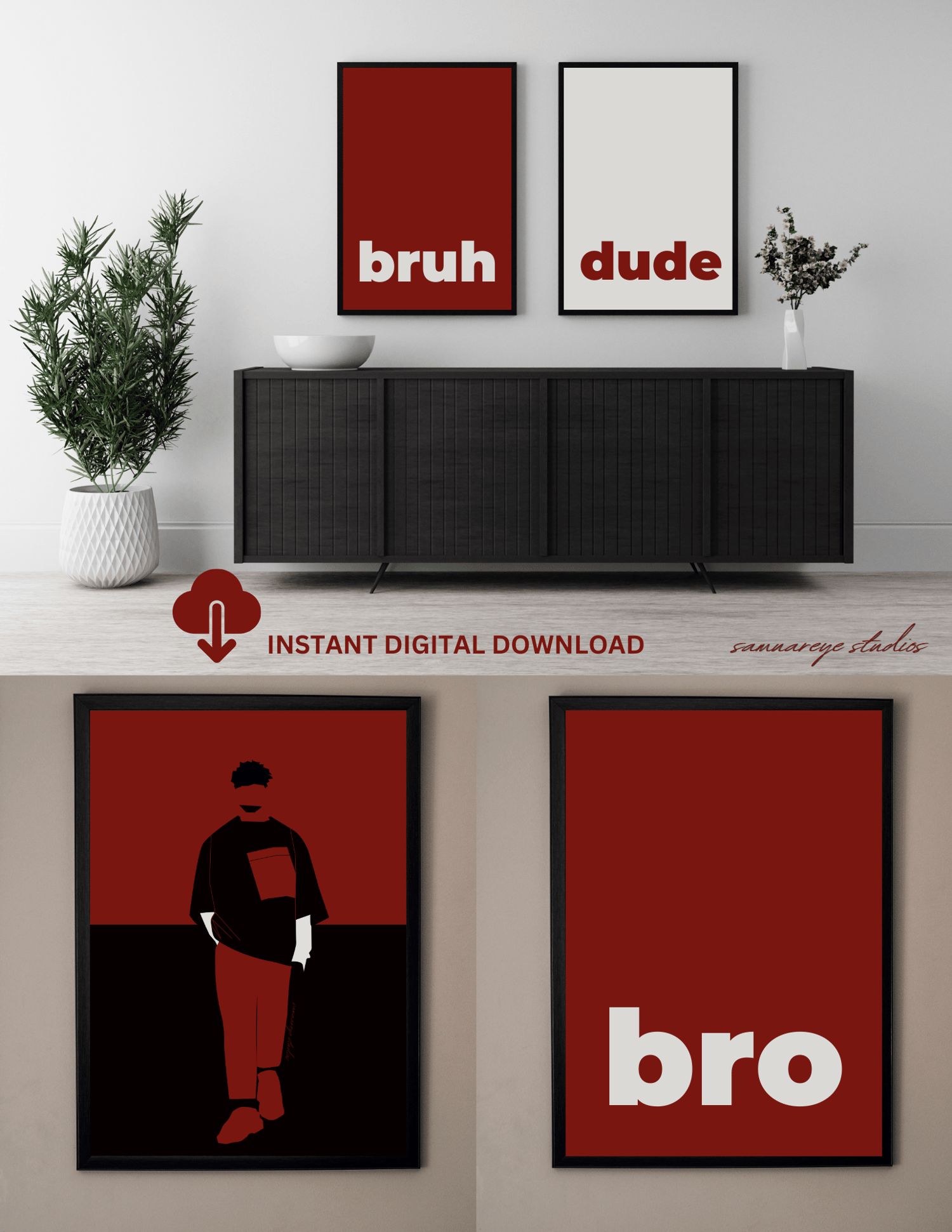 Maroon Black White Boys Room Decor Teen Bedroom Prints Bro Dude Bruh Gift for Gamers Gaming Room Fashion Lover PNG Closet Decor Apartment Decor Instant Digital Download