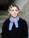 The purple Elidia Scarf is worked in The Merry Merino 110 from Kremke Soul Wool in the colour Lavender [23] in size Small.