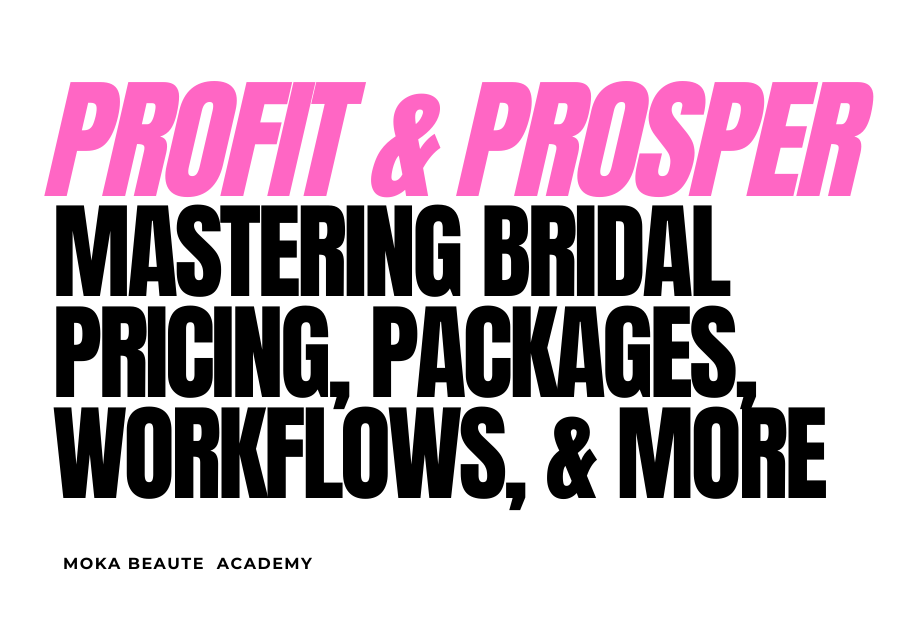 Join us for "Profit & Prosper: Mastering Bridal Pricing, Packages, Workflows, & More." This comprehensive webinar will equip bridal makeup artists with the tools to price services effectively, build irresistible packages, craft airtight contracts, manage business finances, and streamline workflows. Transform your bridal business into a profitable and efficient enterprise, and thrive in any economic climate.