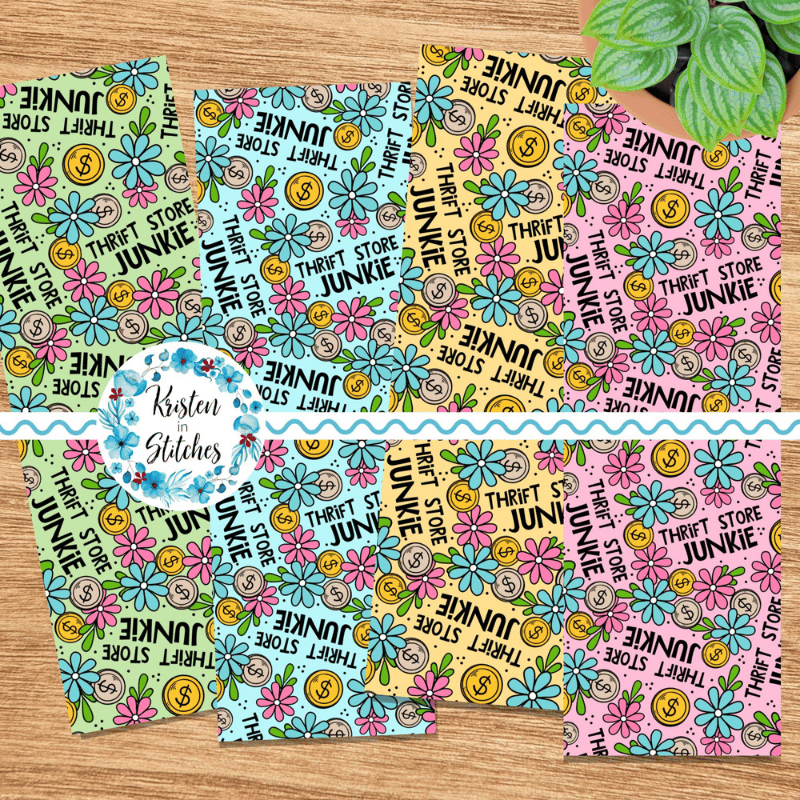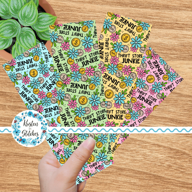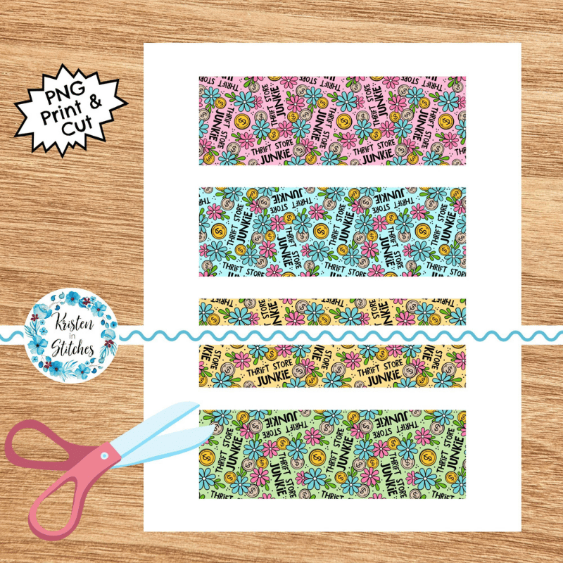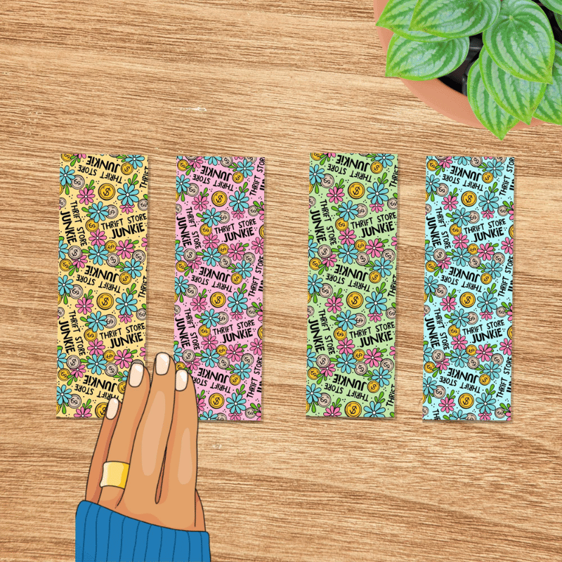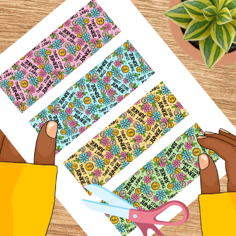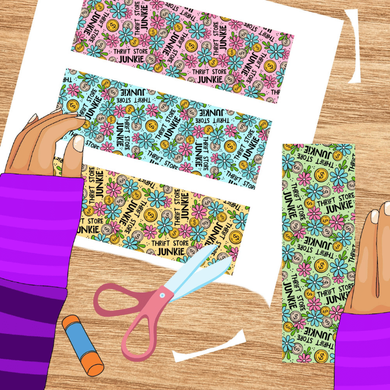Thrift Store Junkie Printable Bookmarks Sheet 2x6 Print and Cut PDF PNG Craft Prizes Activities, Bargain Shopping