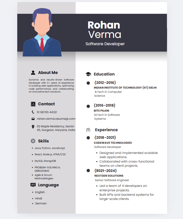 Software Developers, Web Developers, Software Engineers, and IT Professionals looking for a job-ready CV template.