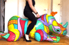 It is not an ordinary sit-to-pop video. But I first feel my way with my high heels to the feet of the rhino. I break them with my heels.