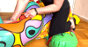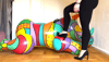 Es ist hier kein gewöhnliches sit-to-pop Video. Sondern ich taste mich zuerst mit meinen Highheels an die Füße des Nashorns heran. Ich mache sie mit meine Absätzen kaputt.