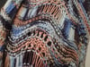 A beautiful handknit lace wrap with armholes, a perfect accessory to finish off an outfit!