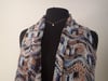 This rectangular wrap was knit from a lightweight wool blend, and should be handwashed and laid flat to dry. It is light and airy with the incorporation of a drop stitch pattern, and is next-to-skin soft.