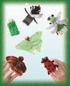 Doesn’t everyone need a buddy? These finger puppets, made from a variety of fingering weight yarns on size 1(2.25mm) and size 2 double pointed needles, are just right for bug enthusiasts of every age. Knit Doug the Dragonfly Dude, Carl the Caterpillar, Lacey the Ladybug, Buck the Butterfly, Manny the Mosquito and Luna Moth for hours of creepy crawly knitting and play pleasure. Use scraps leftover from your sock knitting, or purchase yarn colors to match your local fauna. I consulted field guides, along with a convenient butterfly geneticist, in order to offer you puppets that look a lot like the real thing!