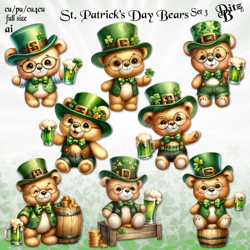 St. Patrick's Day Bears Set 3