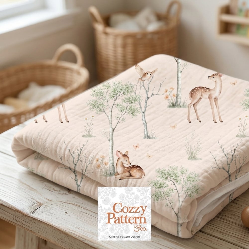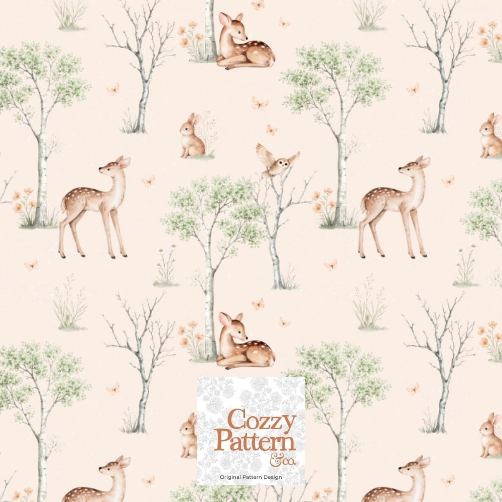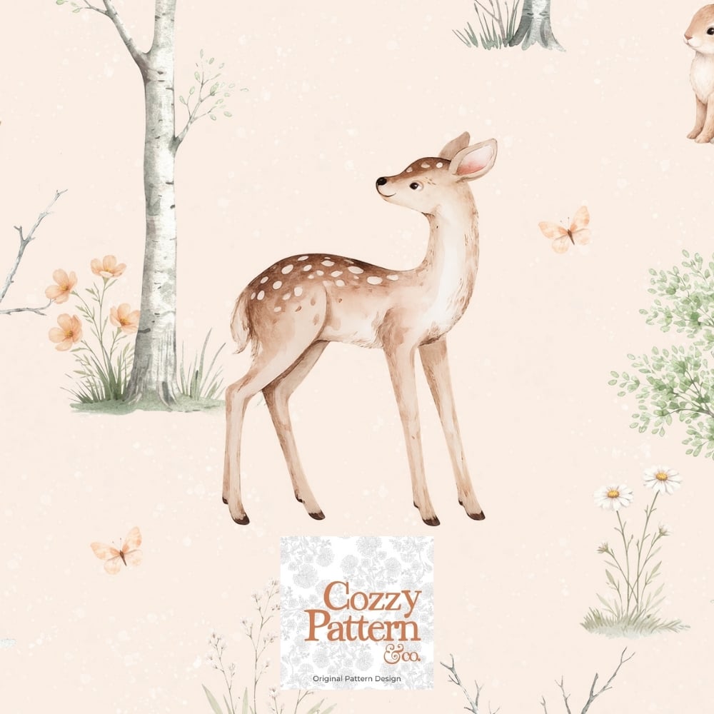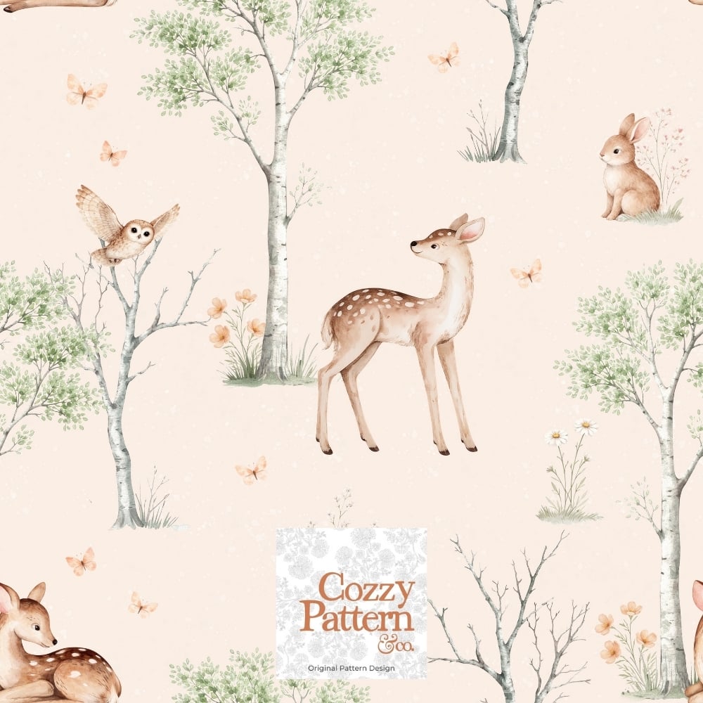 Woodland Baby Deer Seamless Pattern P2C– Soft Forest Animals Nursery Design| Commercial License Included